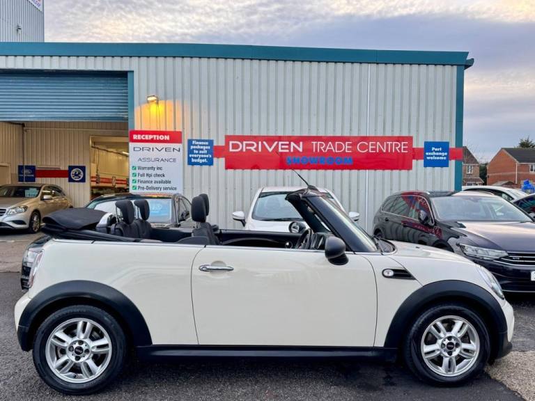 Mini One convertible, 2 door hatchback, April 2012 model, Combined MPG of 49.6, £195 annual road tax, Service history including 7 stamps, 1.6 petrol engine with 82,848 miles, 6 speed manual gearbox, 2 key fobs, Heated front seats, DAB radio, Bluetooth, Aux/USB connection, Electric mirrors/windows, Climate control, Isofix seats, Manual handbrake, Alloy wheels, Rear parking sensors, Factory tinted windows. Also comes with a full 12 months MOT, fresh service & 6 months warranty on sale. Any inspection welcome, part exchange friendly. Driven Trade Cars, Leeholme Road, Behind Tesco, Billingham, TS233TA. - 01642 370823 - £3750 Driven Trade Cars is located behind Tesco Billingham - TS233TA 01642 370823 ALL CARS ARE RIGOROUSLY INSPECTED, HPI CHECKED AND PREPARED TO A HIGH STANDARD TO DRIVE THIS CAR HOME, VISIT WWW.DRIVENTRADECARS.CO.UK OR CALL 01642-370823 TO ARRANGE AN APPOINTMENT WITH OUR SALES TEAM *PLEASE ALLOW 1000 MILEAGE DIFFERENCE FOR TRANSPORTATION BETWEEN SITES- THE DATA DISPLAYED ABOVE DETAILS THE USUAL SPECIFICATION OF THE MOST RECENT MODEL OF THIS VEHICLE. WE AIM TO DETAILS MAIN FEATURES AND SPECIFICATION. WE RECOMMEND THAT YOU ALWAYS CHECK THE DETAILS ADVERTISED .15in Alloy Wheels - Light 5-Star Twin Spoke, 15in Steel Wheels, 3rd Brake Light, Air Conditioning - Automatic, Air Conditioning - Manual, Airbags - Driver, Airbags - Front Passenger, Airbags - Front Passenger with Deactivation Switch, Alarm - Thatcham CAT1, Anti-Lock Braking System - ABS, ASC+T - Automatic Stability Control and Traction, Automatic Door Window Lowering by Approx 6mm When Door Opens, Aux-In Connection, Basic Bluetooth Function with USB Audio, Body Coloured Fuel Filler Cap in Rear Right Side Panel - Linked to Central Locking, Brake Force Display, Brake Pad Wear Indicator, Car Jack, CBC - Cornering Brake Control, Central Locking - Remote, Chrome Line Exterior, Cloth Cosmos - Carbon Black, Colour Line - Polar Beige, Crash Sensor - Fuel Cut-Off, Cupholders - Front x2 - Rear x1, DAB Tuner, Decorative Rings Surrounding Dashboard Instruments, Door Handles - Chrome Plated, Door Handles - Interior - Chrome Plated, Door Sill Finishers - Metal Look and Model Dependent Lettering, Dynamic Stability Control - DSC, Easy Load Function, EBD - Electronic Brake-Force Distribution, Electric Windows - Front - One Touch Up and Down, Electric Windows - One Touch Up and Down Front and Rear, Electronic Power Steering - Speed Related, Embellisher at Bottom Edge of All Windows - Chrome Plated, Exhaust Tailpipe - Visible - Single - Right, External Visible VIN, Front Fog Lights, Gearshift-Selector Lever and Handrake Lever Gaiters in Sensatec, Halogen Lights for Low Beam and High Beam Headlights, Handbrake-lever grip - plastic with chrome plated handbrake push button, Headlight - Beam-Throw Control Electrical with Manual Adjustment, Headlights - Chrome Bezels, Headlights - Follow Me Home, Headrests For All Seats - Manually Adjustable, Heated Mirrors and Windscreen Washer Jets, Heated Rear Window with Automatic Deactivation, Interior Light Pack, Interior lights - Integrated into Centre Front Headliner including Two Reading Lights, Interior Mirror - Mechanical Anti-Dazzle, Interior Surface in Fine White Silver and Door Rings in Black, Interior Surfaces - Piano Black, Interior World - Carbon Black, Knee Roll - Hard Plastic in Dark Grey, Lashing Eyes in Luggage Compartment, Luggage Compartment - Light, MINI Mobility System, Multiple Control Arm Rear Axle, Non Smoker Package, PDC - Park Distance Control - Rear, PEPPER Pack, Pepper White, Personal Profile, Radiator Grille - Frame Chrome-Plated Radiator-Grille Bars Black, Radio BOOST CD, Remote Controlled Alarm System, Rev Coun