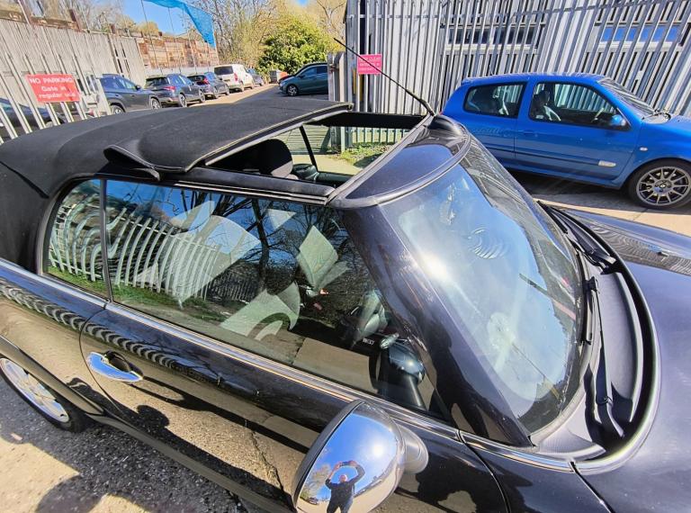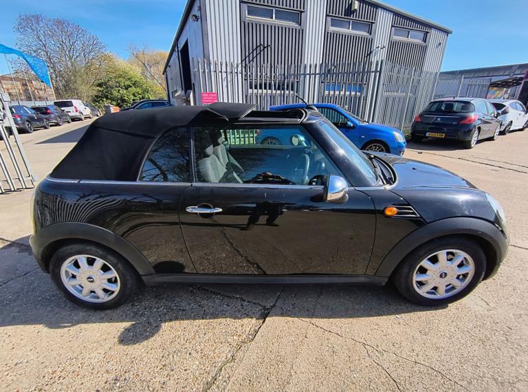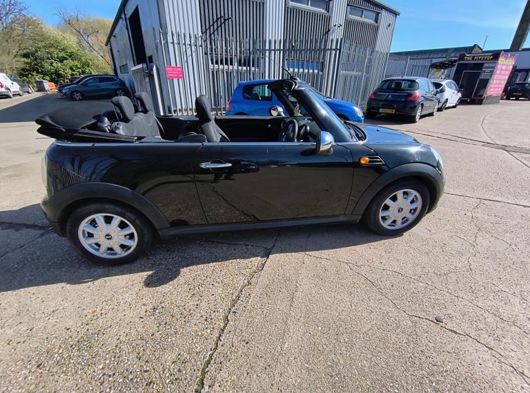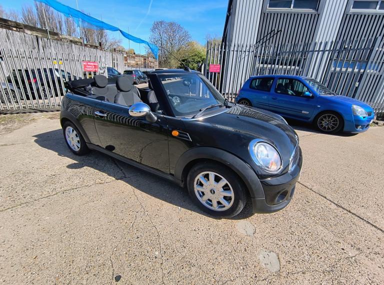 2012 Mini One Convertible. Black with Charcoal trim and Alloy wheels Tints Power steering Aircon CD player Electric windows Central locking 2 keys stunning vehicle in great condition and UlEZ compliant. Lady owner. 6 speed gearbox. Cheaper insurance Mini One. Great colour combination. Great value. For more information please phone. £3499.
