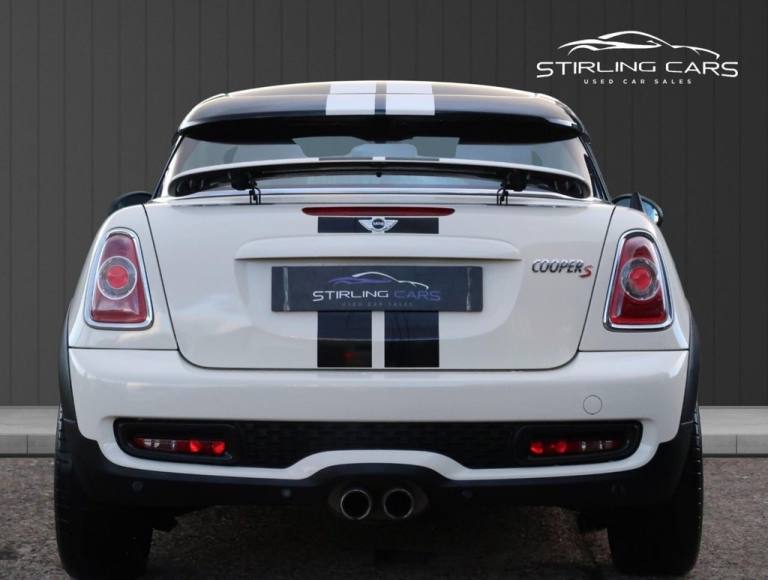 2012 (12) MINI Coupe 1.6 Cooper S finished in excellent condition for its age and mileage. Powered by the lively 1.6 petrol engine producing 184ps and paired with a 6-speed manual gearbox, this Cooper S offers a fun, engaging drive with strong performance while remaining economical. The car has been very well looked after and comes with a full service history. This MINI Coupe stands out with its sporty styling, featuring black bonnet stripes, 17" alloy wheels, xenon headlights and the distinctive electric folding rear spoiler, giving it a sharp and aggressive look. Inside, the cabin is well equipped with the MINI media system and Bluetooth connectivity, making it practical as well as enjoyable to drive. Additional features include parking sensors to assist with manoeuvring and everyday use. The car drives exactly as it should with no unwanted noises and feels tight and responsive on the road. The vehicle comes with a valid MOT, warranty for added peace of mind and 2 keys. A great example of a Cooper S Coupe that has clearly been well maintained and is ready to drive away. Viewing and test drive highly recommended. ALL CARS COME WARRANTED WITH THE OPTION TO EXTEND FOR UP TO 3 YEARS AT A LOW COST. ALL VEHICLES INCLUDE BREAKDOWN COVER FOR THE FULL TERM OF THE WARRANTY. Warranty extensions can also be paid over 10 monthly instalments for added convenience. We now also offer a tyre, alloy and smart repair package; please see the pictures or contact us for more information. This package is available for 3 years at £989 per year and covers any alloy, tyre, or smart repair damage your vehicle may incur. [Website URL removed] At Stirling Cars, we take pride in offering over 100 quality used vehicles, each carefully selected and prepared to the highest standard. Every car goes through a thorough inspection process, comes with a valid MOT, and includes a comprehensive warranty for your peace of mind. We believe in doing things right from the moment a car arrives to the moment you drive it away. It’s prepped to perfection and ready to go..Extended Warranty Available, Ceramic Paint Polish Avaliable , Xenon Headlights & Bluetooth, Chili Pack & Sports Stripes, Gloss Black Alloys & Parking Sensors , 16in Alloy Wheels - Light Rib Spoke, 3-Spoke Sport Leather Steering Wheel, 3rd Brake Light, ASC+T - Automatic Stability Control and Traction, Additional Decor Rings, Air Conditioning - Manual, Airbags - Driver, Airbags - Front Passenger, Airbags - Front Passenger with Deactivation Switch, Airbags - Head and Thorax, Alarm - Thatcham CAT1, Anthracite Headlining, Anti-Lock Braking System - ABS, Automatic Door Window Lowering by Approx 6mm When Door Opens, Aux-In Connection, Body Coloured Fuel Filler Cap in Rear Right Side Panel - Linked to Central Locking, Brake Energy Regeneration- iGR, Brake Force Display, Brake Pad Wear Indicator, CBC - Cornering Brake Control, Car Jack, Central Locking - Remote, Crash Sensor - Fuel Cut-Off, Cruise Control, Cupholders - Two in Front, DAB Tuner, Decorative Rings Surrounding Dashboard Instruments, Door Handles - Chrome Plated, Door Handles - Interior - Chrome Plated, Door Mirrors - Electrically Adjustable, Door Sill Finishers - Metal Look and Model Dependent Lettering, Dynamic Stability Control - DSC, EBD - Electronic Brake-Force Distribution, Electric Windows - Front - One Touch Up and Down, Electronic Power Steering - Speed Related, Embellisher at Bottom Edge of All Windows - Chrome Plated, Engine Scoop in Body Colour, Exhaust Tailpipe - Visible Double Round Central with Chrome Finishers, External Visible VIN, Footrest and Pedals in Stainless Steel, Frame Chrome-Plated Radiator-Grille in Honeycomb Black, Gearshift-Selector Lever and Handrake Lever Gaiters in Sensatec, Halogen Lights for Low Beam and High Beam Headlights, Handbrake-lever grip - plastic with chrome plated handbrake push button, Headlight - Beam-Throw Control Electrical with Manual Adjustment, Headlights - Chrome Bezels, Headlights - Follow Me Home, Headrests For All Seats - Manually Adjustable, Heated Front Windscreen Washer Jets, Heated Mirrors and Windscreen Washer Jets, Heated Rear Window with Automatic Deactivation, Heater with Mechanical Control and Recirculating-Air Button, Hill Assist, Interior Mirror - Mechanical Anti-Dazzle, Interior Surface in Black Chequered Design, Interior World - Carbon Black, Interior lights - Integrated into Centre Front Headliner including Two Reading Lights, Knee Roll - in Leather on Dashboard in Dark Truffle, Lashing Eyes in Luggage Compartment, Luggage