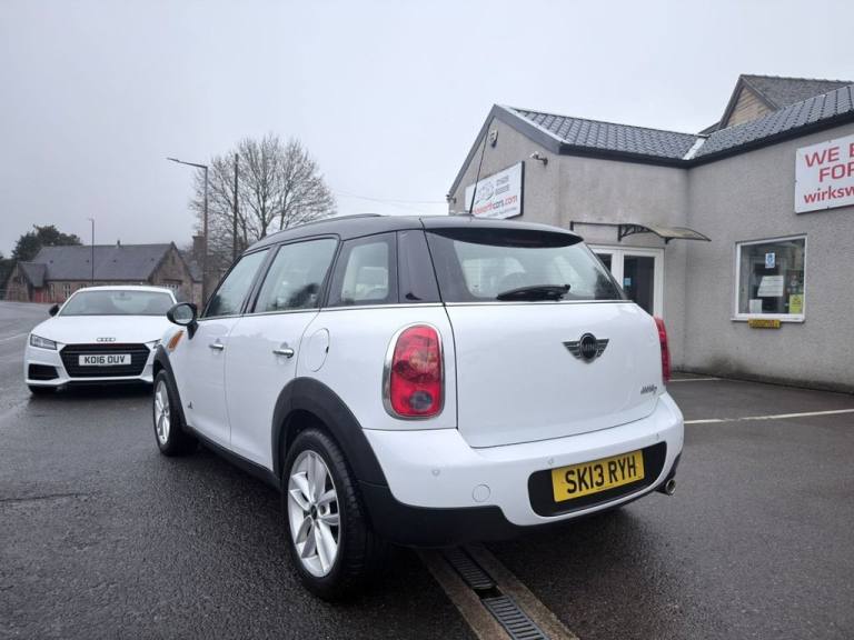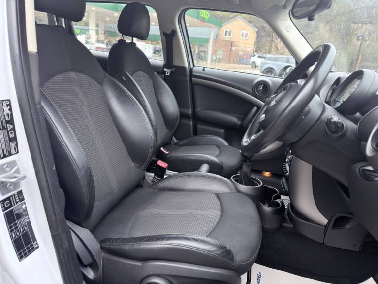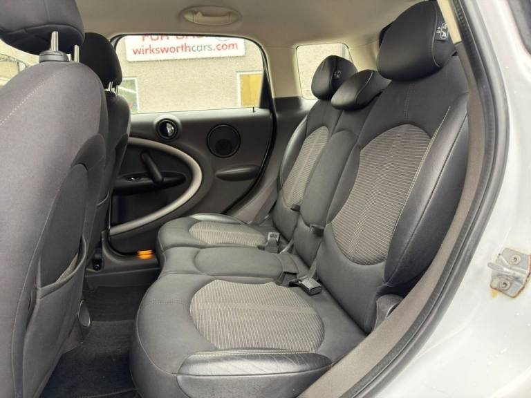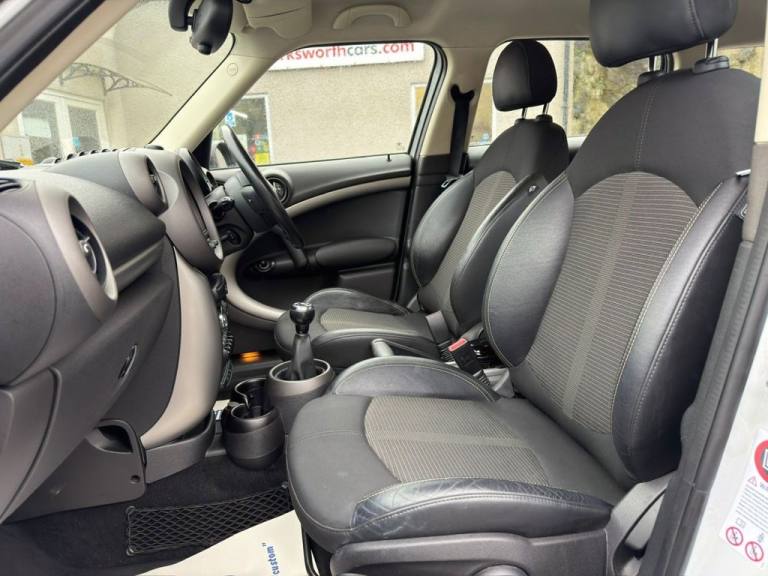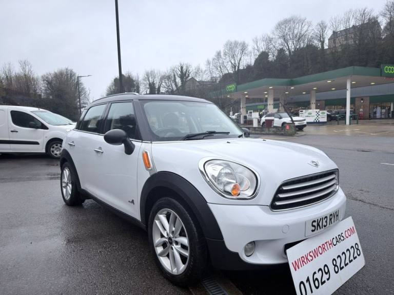 **HERE WE HAVE A SUPERB 5 DOOR 4x4 MINI COUNTRYMAN 1.6 DIESEL COOPER D SUV IN WHITE WITH HALF BLACK LEATHER INTERIOR**SAME LADY OWNER FOR THE LAST 10yrs, Service History with 4 Service Stamps at the Same Garage. (2 FORMER KEEPERS)**LEATHER MULTI-FUNCTION STEERING WHEEL**A/C**C/D RADIO**USB & AUX PORTS**BLUETOOTH**ESP**SWITCHABLE STOP/START**CRUISE CONTROL**4 x ELECTRIC WINDOWS**ELECTRIC DOOR MIRRORS**ISOFIX**BLACK ROOF & BLACK MIRRORS**SILVER ROOF RAILS**17" ALLOYS**REAR PARKING SENSORS**FRONT FOGS**REMOTE CENTRAL LOCKING**VERY GOOD MPG**ONLY £165 ROAD TAX**PLEASE NOTE IM TRYING TO CHASE UP THE SERVICE HISTORY & WILL UPDATE THE ADVERT WHEN SUCCESSFULL** wirksworthcars.com formally known as baileycroft vehicle sales is family owned business in Derbyshire. All our cars are fully HPI CHECKED . Finance is also available subject to status please feel free to call either Darryl on [Phone number removed] for any further help or to book a viewing..16in Alloy Wheels - 5-Star Single Spoke Light, 17in Alloy Wheels - 5-Star Double Spoke Light, 3 Seat Rear Bench, 3-Spoke Sport Leather Steering Wheel, 3rd Brake Light, 6 Speakers System, Air Conditioning - Automatic, Air Conditioning - Manual, Airbags - Driver, Airbags - Front Passenger, Airbags - Front Passenger with Deactivation Switch, Airbags - Front Side, Airbags - Head, Alloy Wheels in Silver, Anti-Lock Braking System - ABS, ASC+T - Automatic Stability Control and Traction, Aux-In Connection, Basic Bluetooth Function with USB Audio, Bike Rack Preparation at Rear, Brake Assist, Brake Energy Regeneration- iGR, Brake Pad Wear Indicator, Car Jack, CBC - Cornering Brake Control, Central Bass Hi-Fi System, Central Locking - Remote, Centre Rail, Child Seat ISOFIX Attachment, CHILI Pack, Cloth-Leather Parallel Lines - Light Tobacco, Colour Line - Carbon Black, Crash Sensor - Fuel Cut-Off, Crash Sensor - Hazard Warning Flashers and Interior Light, Crash Sensor - Unlocking Doors, Cruise Control, Cupholders - Two in Front, DAB Tuner, Dashboard Trim - Dark Silver, Door Ellipse and Downtubes - Dark Silver, Door Handles - Chrome Plated, Door Handles - Interior - Chrome Plated, Door Mirrors - Electrically Adjustable and Heated, Door Sill Finishers - Metal Look and Model Dependent Lettering, DTC - Dynamic Traction Control, Dynamic Stability Control - DSC, EBD - Electronic Brake-Force Distribution, Electric Windows - One Touch Up and Down Front and Rear, Electronic Power Steering, Embellisher at Bottom Edge of All Windows - Chrome Plated, Exhaust Tailpipe - Visible Round Right with Chrome Finisher, Flat Load Floor, Frame Chrome-Plated Radiator-Grille Bars Silver, Front Fog Lights, Gearshift and Selector Lever Gaiters in Artificial Leather, Grab Handles, Halogen Lights for Low Beam and High Beam Headlights, Handbrake-Lever Grip Plastic with Central Push Button on Underside of Lever, Headlight - Beam-Throw Control Electrical with Manual Adjustment, Headlights - Chrome Bezels, Headlights - Follow Me Home, Headlining - Beige, Headrests For All Seats - Manually Adjustable, Heated Rear Window with Automatic Deactivation, Hill Assist, Interior Light Pack, Interior lights - Integrated into Centre Front Headliner including Two Reading Lights, Interior Mirror - Mechanical Anti-Dazzle, Interior World - Dark Tobacco, Lashing Eyes in Luggage Compartment, Light White, Luggage Compartment - Light, Microfilter, MINI Mobility System, MINIMALISM Fuel Saving Technology, Multi-Link Rear