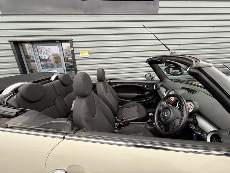 15in Alloy Wheels - Light 5-Star Twin Spoke,Air Conditioning - Automatic,Cloth Cosmos - Carbon Black,Convertible Pack,Pepper White, 6 Speakers System, Aux-In Connection, DAB Tuner, Radio BOOST CD, Brake Force Display, Brake Pad Wear Indicator, PDC - Park Distance Control - Rear, Rev Counter, TPWS - Tyre Pressure Warning System, 15in Steel Wheels, Body Coloured Fuel Filler Cap in Rear Right Side Panel - Linked to Central Locking, Door Handles - Chrome Plated, Door Mirrors - Electrically Adjustable and Heated, Electric Windows - Front - One Touch Up and Down, Embellisher at Bottom Edge of All Windows - Chrome Plated, Exhaust Tailpipe - Visible - Single - Right, Headlights - Chrome Bezels, Heated Front Windscreen Washer Jets, Heated Rear Window with Automatic Deactivation, MINI Mobility System, Multiple Control Arm Rear Axle, Orange Indicators, Radiator Grille - Matt Black, Side Air Inlets Black with Integrated Orange Indicator, Sills-Bumper Edges-Wheel Arches - Black with Model-Specific Bumper Trims, Soft-Top Black, Soft-Top with Fully Automatic Electric Actutation with Continuously Variable Sunroof Function, Tailgate Handle - Black, Tailgate With Low Loading Sill-Maximum Load-Bearing Capacity 80 kg, 3rd Brake Light, Halogen Lights for Low Beam and High Beam Headlights, Headlight - Beam-Throw Control Electrical with Manual Adjustment, Headlights - Follow Me Home, Air Conditioning - Manual, Automatic Door Window Lowering by Approx 6mm When Door Opens, Car Jack, Cooled Glovebox, Cupholders - Front x2 - Rear x1, Decorative Rings Surrounding Dashboard Instruments, Door Handles - Interior - Chrome Plated, Door Sill Finishers - Metal Look and Model Dependent Lettering, Easy Load Function, Gearshift-Selector Lever and Handrake Lever Gaiters in Sensatec, Glovebox - Lockable, Handbrake-lever grip - plastic with chrome plated handbrake push button, Headrests For All Seats - Manually Adjustable, Heater with Mechanical Control and Recirculating-Air Button, Interior Lighting Integrated into Centre Front Headliner Above Interior Mirror, Interior Mirror - Mechanical Anti-Dazzle, Interior Surface in Fine White Silver and Door Rings in Black, Interior World - Carbon Black, Knee Roll - Hard Plastic in Dark Grey, Knee Roll in Hard Plastic on Dashboard in Carbon Black, Lashing Eyes in Luggage Compartment, Luggage Compartment - Light, Microfilter, Non Smoker Package, Personal Profile, Seats - Drivers Memory Function, Seats - Easy Entry Access, Seats - Height Adjustable Drivers, Speedometer Centred in Instrument Panel, Steering Column Height and Length Adjustment, Steering Wheel - 2-Spoke Plastic, Storage Options in the Trim Panels of Each Front Panel as well as Centre Console, Sun Visors with Integrated Vanity Mirrors on Drivers and Passengers Sides, Tool Kit in Luggage Compartment, Electronic Power Steering - Speed Related, Single Joint Spring Strut Front Axle, Airbags - Driver, Airbags - Front Passenger, Airbags - Front Passenger with Deactivation Switch, Airbags - Head, Anti-Lock Braking System - ABS, ASC+T - Automatic Stability Control and Traction, Brake Assist, CBC - Cornering Brake Control, Central Locking - Remote, Child Seat ISOFIX Attachment, Crash Sensor - Fuel Cut-Off, Crash Sensor - Hazard Warning Flashers and Interior Light, Crash Sensor - Unlocking Doors, Dynamic Stability Control - DSC, EBD - Electronic Brake-Force Distribution, Electronic Vehicle Immobiliser, Hill Assist, Remote Controlled Alarm System, Roll-Over Protection System, Second Radio Remote Key.FINANCE FROM 9.9% APR WE WILL NOT BE BEAT ON RATE!This stunning car is prepared to the highest standard set in Pepper White, with a contrasting Black Cloth interior. The car comes with service history, serviced recently at the following interval, 49k, and will be and Mot'd by ourselves. The car boasts the following spec;Rear Park,15"" Alloys,Privacy glass,Climate Control,Bluetooth,Dab,Finance calculator available on our website. Finance packages tailored to your needs, just ask one of our team to give you a quote. We offer hire purchase (HP) and PCP deals both at competitive rates. (+£149 Service support fee on all cars)Any car can be reserved with deposits from £100 subject to inspection. If upon your visit to our site, the car is not as described the deposit would be refunded in full immediately. We do price our cars as competitively as possible and because of this we sell cars very quickly. If you like the car chances are somebody else does too so don’t miss out and reserve now!We have chosen award-winning Autoguard Warranties as our extended warranty provider, as they offer comprehensive cover, with a variety of products to suit all your needs. Every car comes with a free 3 month standard warranty with a £300 claim limit. There is also the option to upgrade to a fully comprehensive premium with roadside assistance and breakdown 12-month warranty with a £2000 claim limit for £399. If the vehicle is over 2.9ltr £499.