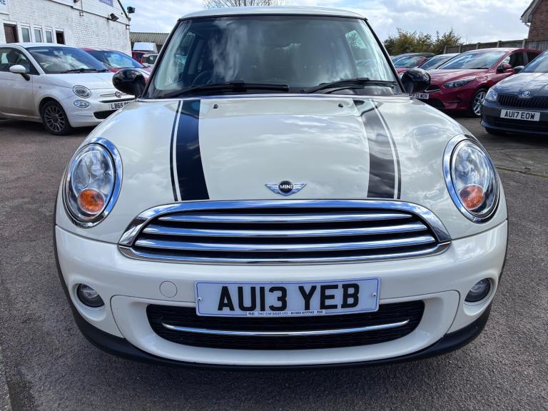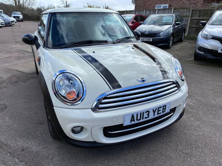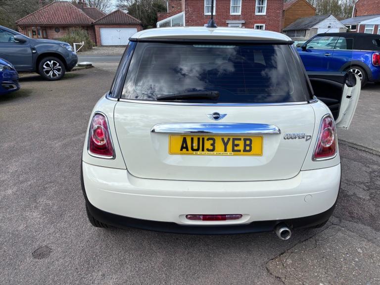 2013 13 MINI COOPER D 1.6 TURBO DIESEL 3DR IN PEPPER WHITE WITH BLACK MIRRORS, BLACK BONNET STRIPES AND BLACK ALLOY WHEELS, PRIVACY GLASS, AIRCON, BLUETOOTH, 6 SPEED GEARBOX, FANTASTIC ECONOMY AND POWER, 94,000 MILES WITH GOOD SERVICE HISTORY, £20 A YEAR