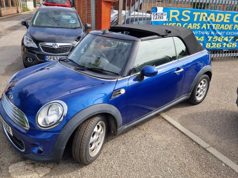 LRS TRADE CARS is an established family run business based in elmstead market just outside colchester that has built up an enviable reputation over the last 20 years in the motor trade . we are open to all part exchanges on any of our cars . we have new stock weekly so there will always be a wide variety of cars on site . for a quicker response please call, At LRS TRADE CARS we are pleased to offer you a 2014 mini one cabriolet, summer is still here so grab a bargain, 1.6 petrol, 6 speed manual gearbox, service history, gearbox reconditioned 18 months ago. 111k miles, alloy wheels, electrically operated roof with either partial open or fully open, built in sat nav, heated front and rear screens, heated seats, air con, remote central locking, 4 x electric windows, usb connectivity £3795 finance available and 3 months warranty inc. (extendable) please call for more details.