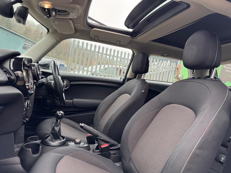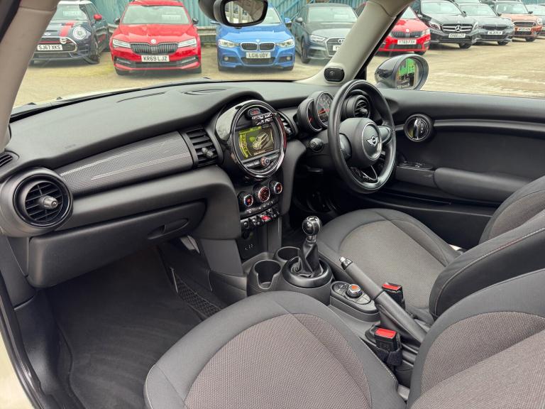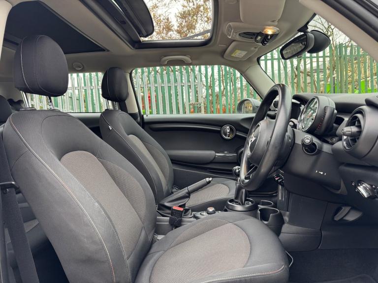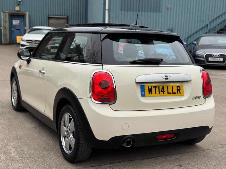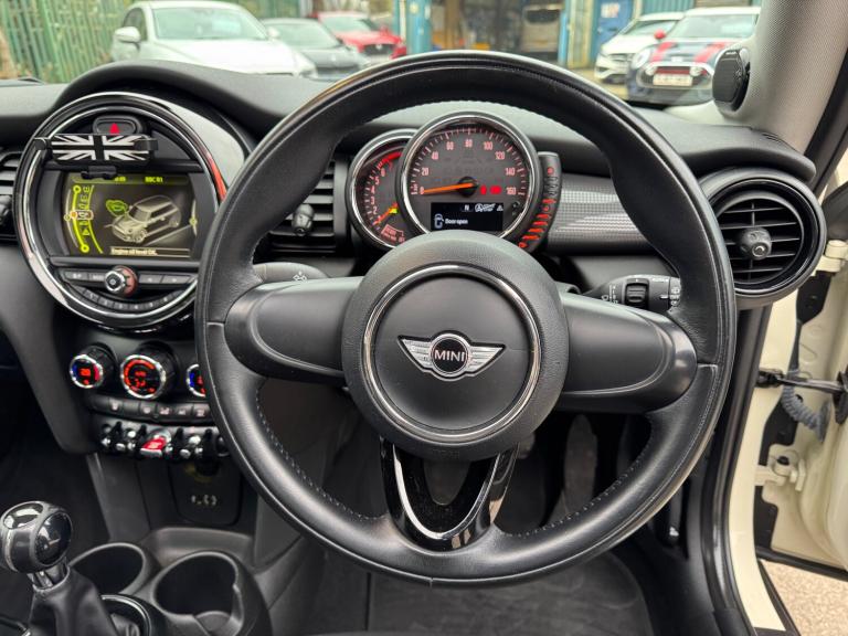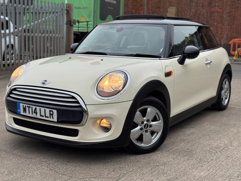 This 2014 Mini Hatch 1.5 Cooper is a stylish and efficient hatchback with just 91821 miles on the clock. Powered by a petrol engine and paired with a manual transmission, this Euro 6 compliant vehicle is ideal for city driving and long journeys alike. With a MOT that expires on 12/02/2027, this Mini offers peace of mind for the new owner. The 3-door, 4-seat layout makes it practical for daily use, and it is ULEZ compliant, making it suitable for driving in urban areas. Finished in Pepper White with black bonnet stripes, roof and mirror caps, it also features a panoramic electric glass sunroof and a 3-spoke sport leather steering wheel. A perfect combination of style, performance, and practicality, the Mini Hatch is a great choice for anyone in the market for a reliable, fun-to-drive vehicle. UK delivery available. Part exchange welcome. Extended warranty options available. Trading standards approved dealership. AA standards approved dealership. Autotrader highly rated dealership. Features Include: , 15in alloy wheels - heli in silver, door handles - chrome plated, door mirrors - electrically adjustable and heated, electric windows - front - one touch up and down, headlights - chrome bezels, heated front windscreen washer jets, mini mobility system, radiator grille - aluminium, security locking wheel bolts, spoiler - roof, 3rd brake light, daytime driving lights, front fog lights, halogen lights for low beam and high beam headlights, headlight - beam-throw control electrical with manual adjustment, headlights - follow me home, asc+t - automatic stability control and traction, airbags - driver, airbags - front passenger, airbags - front passenger deactivation switch, airbags - front side, airbags - head, alarm - thatcham cat1, anti-lock braking system - abs, brake drying, cbc - cornering brake control, central locking - activated at 10mph, central locking - remote, child seat isofix attachment, crash sensor - unlocking doors, dtc - dynamic traction control, dynamic stability control - dsc, ebd - electronic brake-force distribution, edlc - electronic differential lock control, front passenger isofix, hill assist, rear passenger isofix, bluetooth hands free function with usb audio, dab tuner, radio with four-line display, brake force display, brake pad wear indicator, electronic power steering - speed related, on-board computer, tpws - tyre pressure warning system, cupholders - rear x2, cupholders - two in front, door handles - interior - chrome plated,