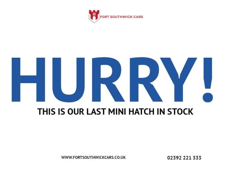 At Fort Southwick Cars we do everything possible to get you on the road with your perfect car, most of our cars are ready to be driven away the same day. Test drive in a relaxed atmosphere with no pressure. We are open 6 days a week and very easy to find, just off the M27 and 30 minutes from Southampton airport. Collection from our local train station: Portchester. For out of hours enquiries please use the WhatsApp widget on our website, [Website URL removed] or email us on [Email address removed. Click Email button to contact us.]. Call our experienced sales team now on [Phone number removed] to discuss part exchanges, finance quotations. Call our experienced sales team now on [Phone number removed] to discuss part exchanges, finance quotations or reserve the car for a small fee. Zero deposit available, rates from 12.9% APR, Extended warranties available from £149* There is a £299 administration charge for any cars purchased using a 3rd party finance broker. *Term and Conditions apply..Bluetooth Hands Free Function with USB A, MINI Excitement Pack, Visual Boost Radio, Midnight Black, PEPPER Pack, 15in Alloy Wheels - Heli in Silver, 3rd Brake Light - Red, ASC+T - Automatic Stability Control and Traction, Airbags - Driver, Airbags - Front Passenger, Airbags - Front Passenger Deactivation Switch, Airbags - Front Side, Airbags - Head, Alarm - Thatcham CAT1, Anti-Lock Braking System - ABS, Automatic Door Window Lowering by Approx 6mm When Door Opens, Bluetooth Hands Free Function with USB Audio, Body Coloured Fuel Filler Cap in Rear Right Side Panel - Linked to Central Locking, Brake Drying, Brake Force Display, Brake Pad Wear Indicator, CBC - Cornering Brake Control, Central Locking - Activated At 10mph, Central Locking - Remote, Child Seat ISOFIX Attachment, Crash Sensor - Fuel Cut-Off, Crash Sensor - Hazard Warning Flashers and Interior Light, Crash Sensor - Unlocking Doors, Cupholders - Rear x2, Cupholders - Two in Front, DAB Tuner, DTC - Dynamic Traction Control, Daytime Driving Lights, Decorative Rings Surrounding Dashboard Instruments in Chrome Plated, Door Handles - Chrome Plated, Door Handles - Interior - Chrome Plated, Door Mirrors - Aspheric on Drivers Side, Door Mirrors - Electrically Adjustable and Heated, Dynamic Stability Control - DSC, EBD - Electronic Brake-Force Distribution, EDLC - Electronic Differential Lock Control, Electric Windows - Front - One Touch Up and Down, Embellisher at Bottom Edge of All Windows - Chrome Plated, Exhaust Tailpipe - Visible - Single - Round with Chrome Finisher, External Visible VIN, Foldable Rear Backrest, Foldable Rear Backrest and 50:50 Split, Front Fog Lights, Front Passenger ISOFIX, Gearshift-Selector Lever and Handrake Lever Gaiters in Sensatec, Halogen Lights for Low Beam and High Beam Headlights, Headlight - Beam-Throw Control Electrical with Manual Adjustment, Headlights - Chrome Bezels, Headlights - Follow Me Home, Headliner - Satellite Grey, Headrests For All Seats - Manually Adjustable, Heated Front Windscreen Washer Jets, Heated Rear Window with Automatic Deactivation, Heater with Mechanical Control and Recirculating-Air Button, Hill Assist, Interior Lighting Integrated into Centre Front Headliner Above Interior Mirror, Interior Lighting in Centre of Headlining, Interior Mirror - Mechanical Anti-Dazzle, Interior Trim - Hazy Grey, Knee Roll in Hard Plastic on Dashboard - Carbon Black, Lashing Eyes in Luggage Compartment, Luggage Compartment - Light, MINI Central Display with Illumina