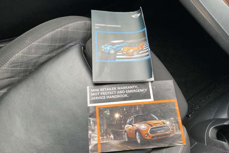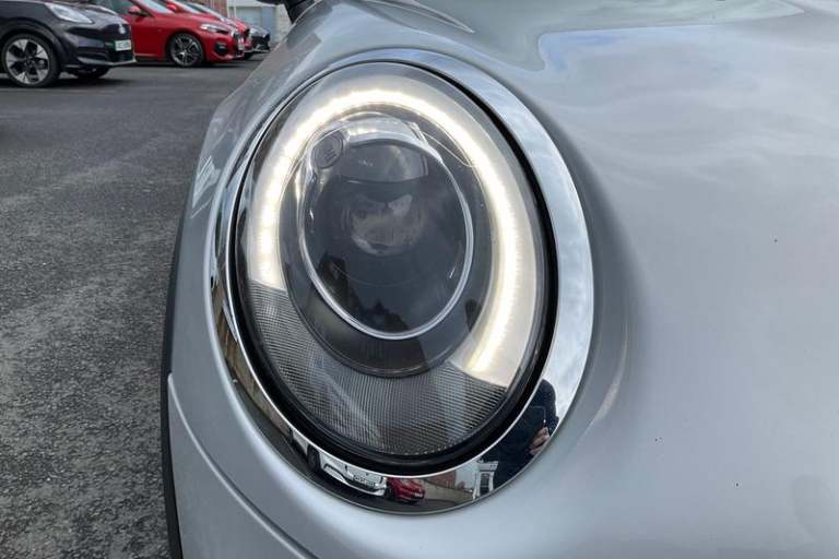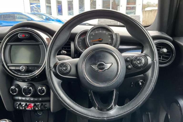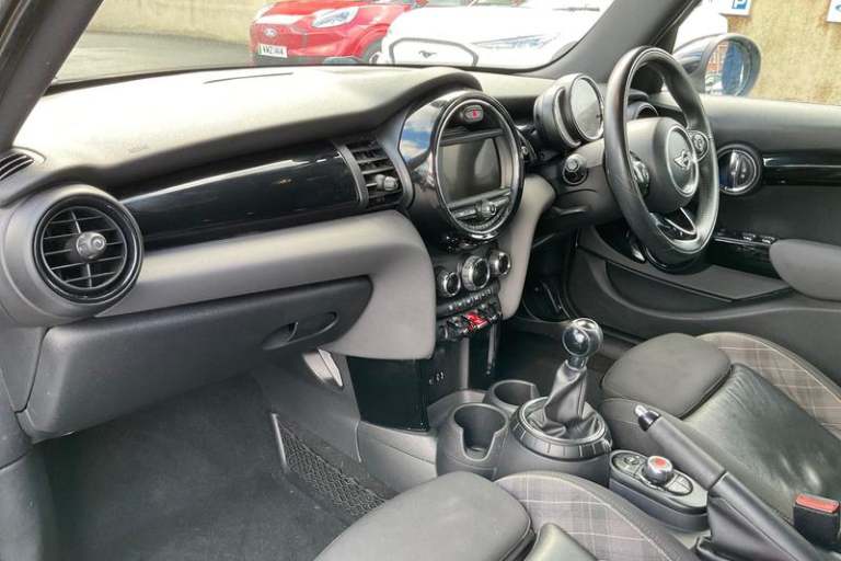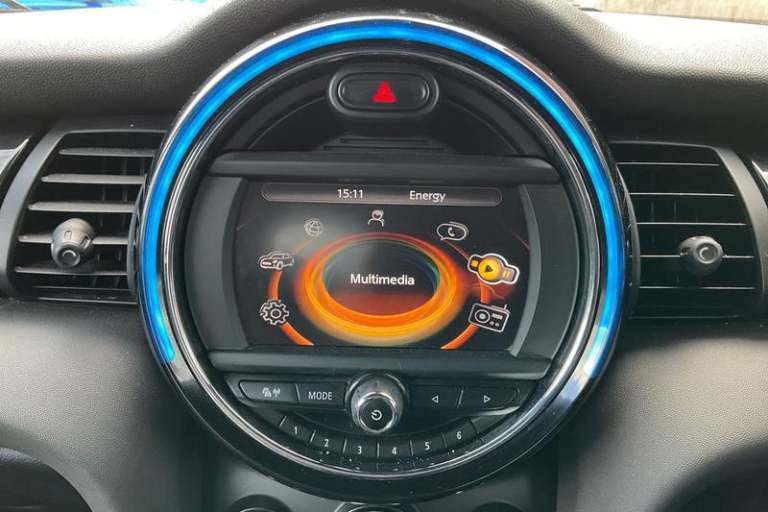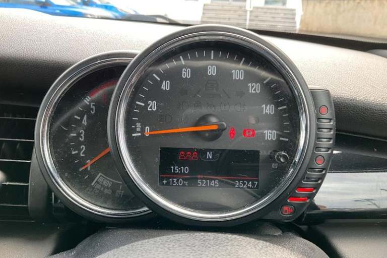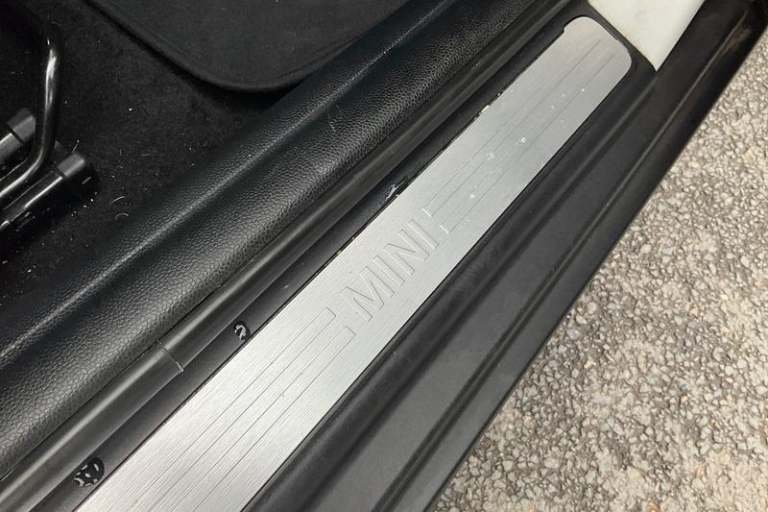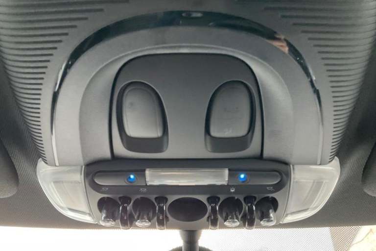 Acoustic seat-belt warning, Brake fluid level warning light, Brake pad wear indicator warning light, DTC - Dynamic traction control, Exterior temperature gauge, Intelligent emergency call, MINI TeleServices, Oil level indicator, On board computer, Push button starter, Service interval indicator, Servotronic PAS, 2 speed wipers+intermittent wipe, Aluminium tailgate, Anti dazzle mirror, Anti trapping/one touch open close front windows, Body coloured bumpers, Chrome bezels around rear lights and headlights, Chrome door handles, Chrome exhaust tailpipe, Chrome grille surround, Chrome plated trim on bottom edge of window, Chrome strip on lower grille, Electric front windows, Electrically adjustable door mirrors, Flared wheel arches, Follow me home headlights, Green tinted heat insulating glass, Heated door mirrors/heated windscreen washers, Heated rear window with auto timer, High gloss black tailgate, Rear wiper, Roof spoiler in roof colour, 2 rear head restraints, 4 boot load lashing points, 4 way manually adjustable passenger seat with height, reach, tilt, backrest and headrest, 6-way manually adjustable driver's seat, Active carbon filter, Air recirculation system, Auxiliary socket in centre console storage compartment, Centre console storage, Driver's seat height adjuster, Driver/passenger sunvisors, Front and rear cupholders, Front head restraints, Front interior light, Front passenger grab handle, Gear/selector and handbrake in artificial leather, Internal chrome door handles,