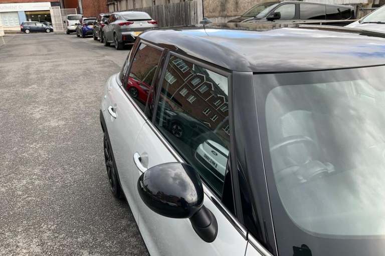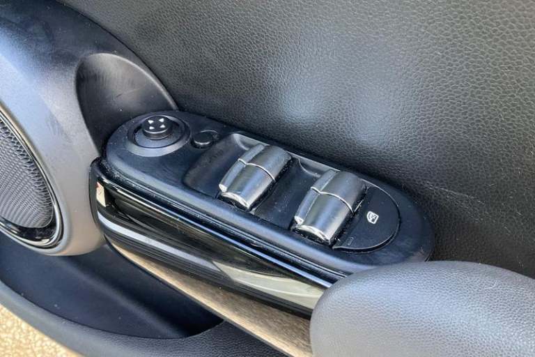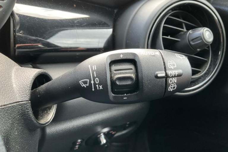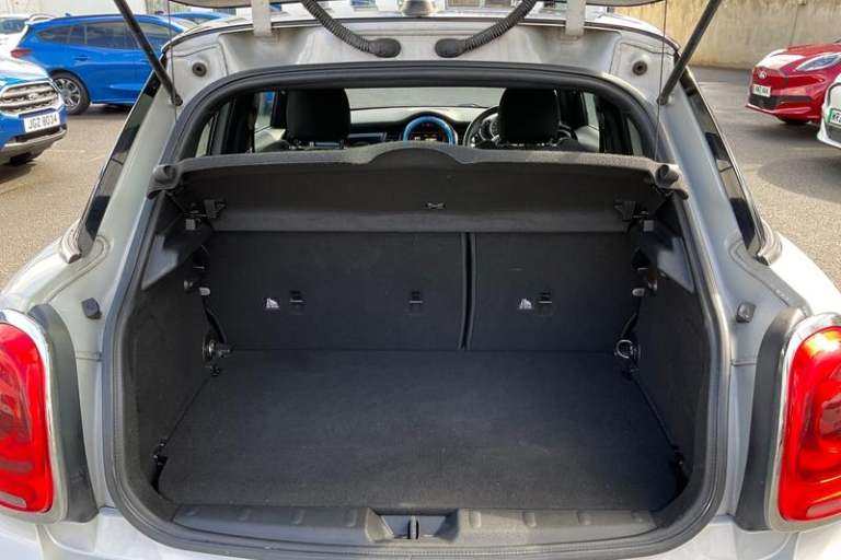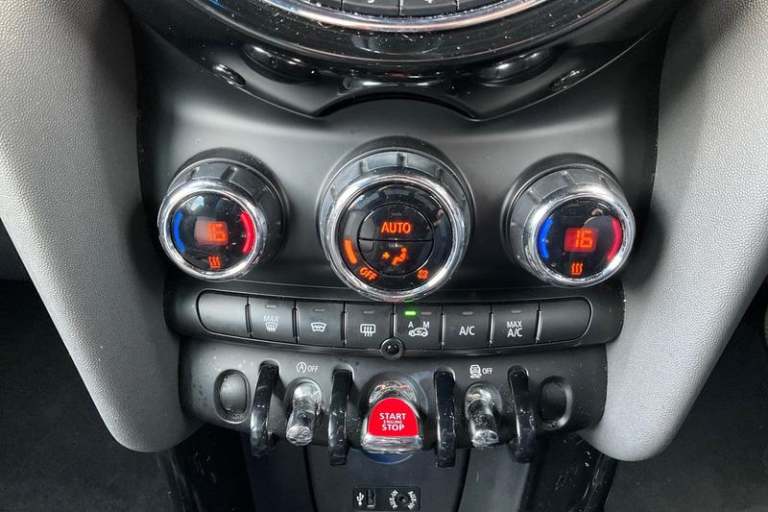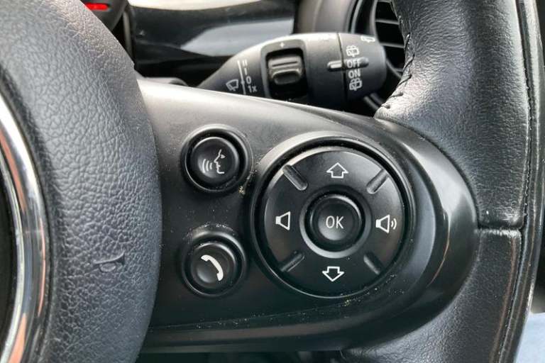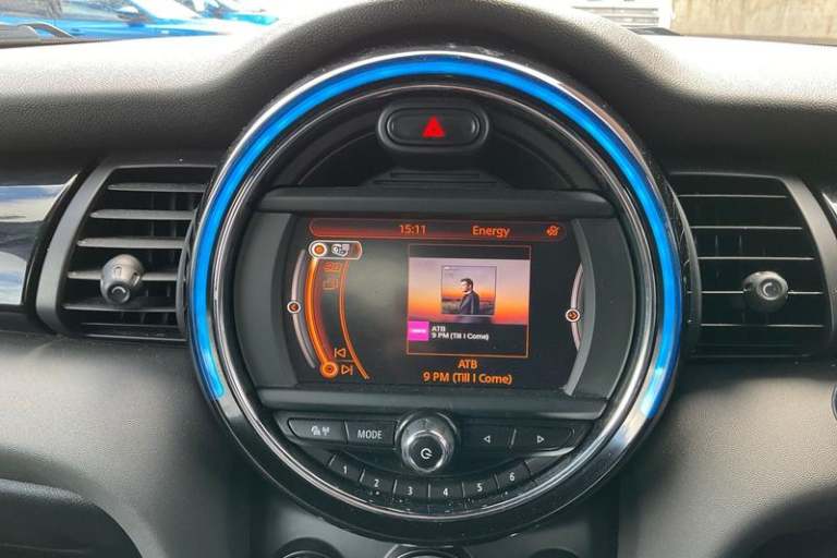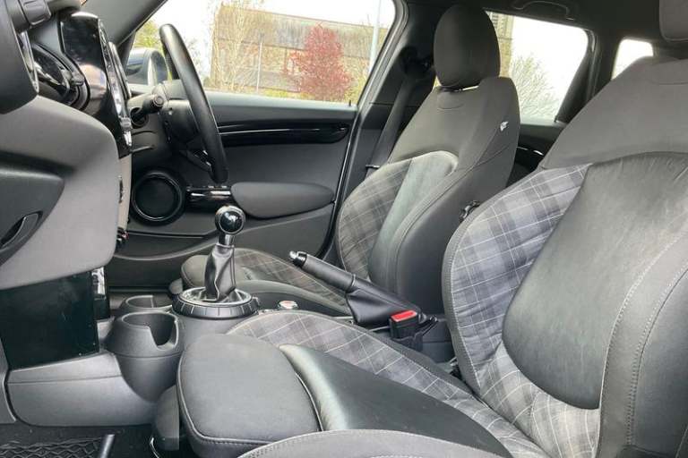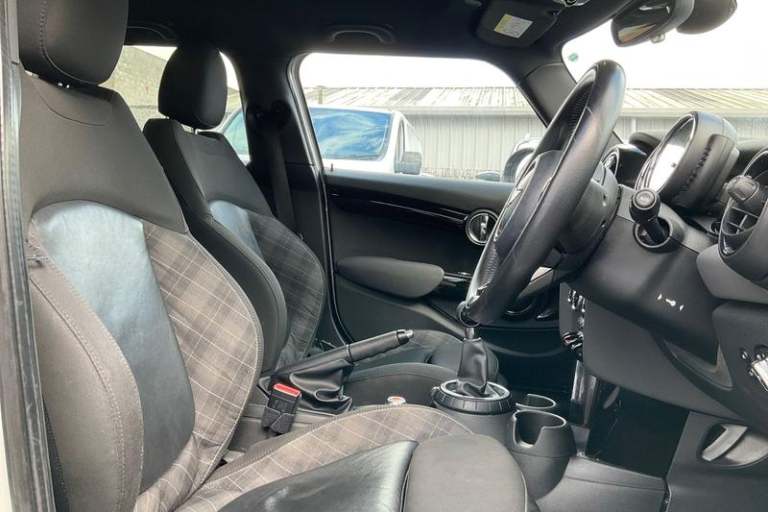 Acoustic seat-belt warning, Brake fluid level warning light, Brake pad wear indicator warning light, DTC - Dynamic traction control, Exterior temperature gauge, Intelligent emergency call, MINI TeleServices, Oil level indicator, On board computer, Push button starter, Service interval indicator, Servotronic PAS, 2 speed wipers+intermittent wipe, Aluminium tailgate, Anti dazzle mirror, Anti trapping/one touch open close front windows, Body coloured bumpers, Chrome bezels around rear lights and headlights, Chrome door handles, Chrome exhaust tailpipe, Chrome grille surround, Chrome plated trim on bottom edge of window, Chrome strip on lower grille, Electric front windows, Electrically adjustable door mirrors, Flared wheel arches, Follow me home headlights, Green tinted heat insulating glass, Heated door mirrors/heated windscreen washers, Heated rear window with auto timer, High gloss black tailgate, Rear wiper, Roof spoiler in roof colour, 2 rear head restraints, 4 boot load lashing points, 4 way manually adjustable passenger seat with height, reach, tilt, backrest and headrest, 6-way manually adjustable driver's seat, Active carbon filter, Air recirculation system, Auxiliary socket in centre console storage compartment, Centre console storage, Driver's seat height adjuster, Driver/passenger sunvisors, Front and rear cupholders, Front head restraints, Front interior light, Front passenger grab handle, Gear/selector and handbrake in artificial leather, Internal chrome door handles,