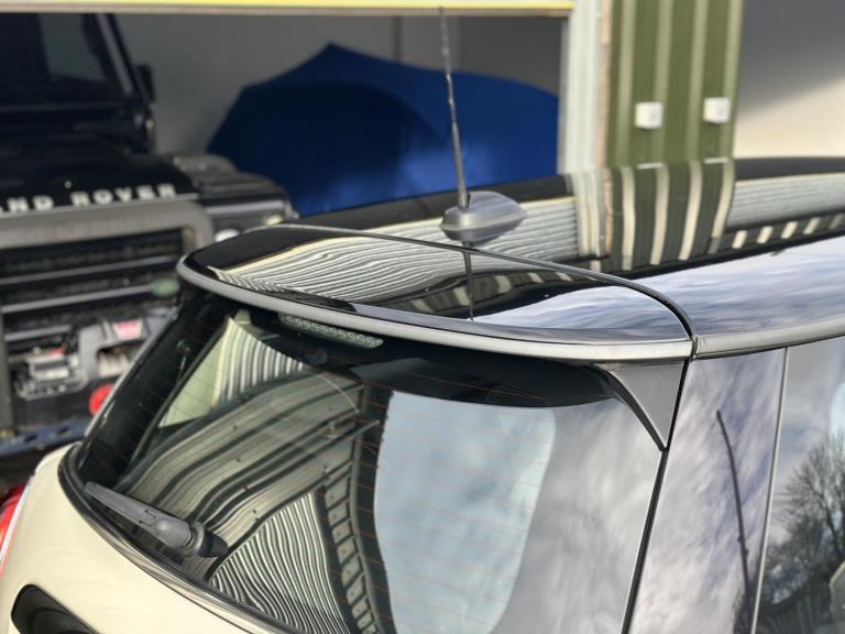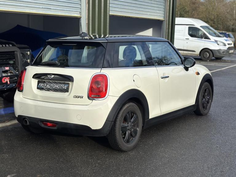 MINI Hatch 1.5 Cooper three door petrol manual with 136 ps, finished in Pepper White. First registered in 2015 on YN65WBM and now showing 98,500 miles. It has had four previous keepers. It comes with full service history and was serviced again at 98,000 miles in May 2025, with the MOT completed at the same time. It is fully up to date and ready to use. The 1.5 turbo engine is lively and economical, and the manual gearbox suits the car well. The exterior sits on 16 inch Victory Spoke alloy wheels in black. Inside you get Firework cloth seats in carbon black, the glowing red colour line across the cabin and manual air conditioning.