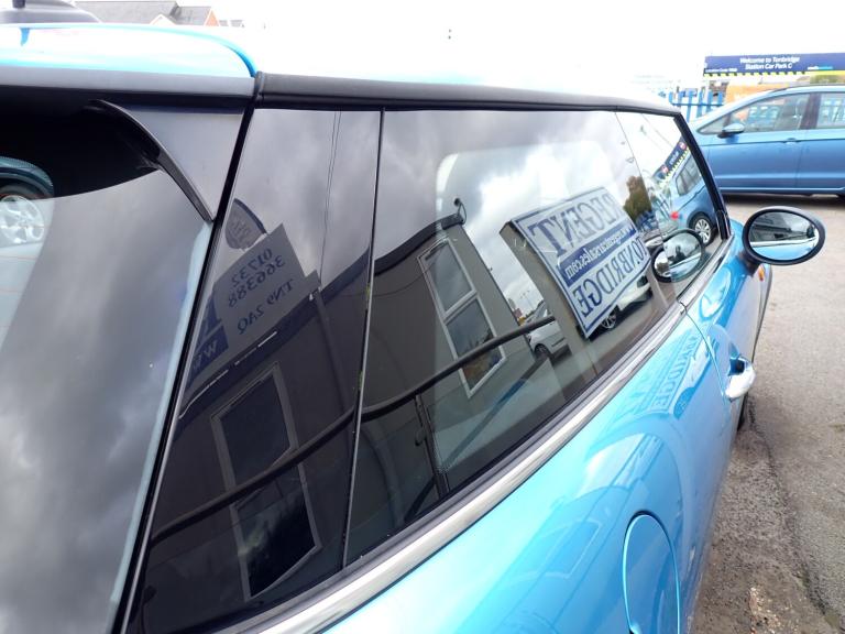 Outstanding example in Metallic Electric Blue, with only 22,000 miles, with the economical 1.2 litre petrol engine and automatic transmission, easy to drive and park, very tidy condition inside and out, complete with 2 keys. This Mini available now for your viewing and test drive in Tonbridge where we are open 7 days a week. Features Include: , 12volt socket in front centre console, bluetooth hands free function with usb audio, dab tuner, intelligent emergency calling - e-call, mini teleservices, radio with four-line display, speakers - two mid range in front doors and two woofers under front seats, 15in steel wheels, body coloured fuel filler cap in rear right side panel - linked to central locking, chrome bezels around rear lights and headlights, door handles - chrome plated, exhaust tailpipe - visible - single - round - left hand side, exterior mirrors - aspheric on drivers side - electrically adjustable, front side indicators - orange, heated mirrors and windscreen washer jets, heated rear window with automatic deactivation, heated window heater, mini mobility system, radiator grille - chrome border and slats in high-gloss black, rear fog light, roof spoiler painted in roof colour, roof in body colour, side scuttles black with integrated direction indicator orange, sills - bumper edges - wheel arch cover in black, stainless steel embellisher at bottom edge of all windows, tailgate handle - black matt, window lifts - electrical for drivers and front passengers sides, 3 point seatbelts on all seats, airbags for driver and front passenger - 6 airbags as standard, alarm and immobiliser - thatcham cat 1, anti-lock braking system - abs, crash sensor, dtc - dynamic traction control with edlc - electronic differential lock control, dynamic stability control - dsc, front passenger isofix and airbag de-activation switch, fuel pump automatic cut-off in crash situation, locking system with central locking, rear window wiper, 3rd brake light - led along top of rear window, daytime driving lights, follow me home function, front fog lights, halogen lights for low beam and high beam headlights, headlight - beam-throw control electrical with manual adjustment, air conditioning - manual, automatic door window lowering by approx 6mm when door opens, boot release via remote control, colour line - carbon black, cupholders - two in front and one in the rear centre console, decorative rings surrounding dashboard instruments in chrome plated, door sill finishers - metal look