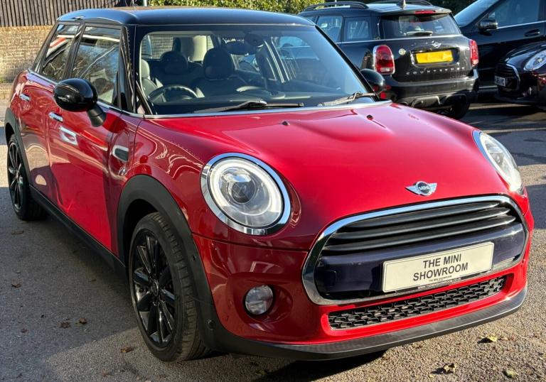 A frequently requested automatic 5 door with sat nav, this Mini Cooper 1.5 Automatic with Chili and Media XL packs and further desirable factory specified optional extras ticks a lot of boxes. Offered with seven workshop visits recorded, it has one former keeper listed on the V5 registration document. Finished in Blazing Red Metallic with Jet Black roof and mirror caps co-ordinated with Carbon Cross Punch leather upholstery. Factory specified options include: Automatic transmission, Chili pack, Media XL - Mini Professional Navigation - Mini Connected XL - Enhanced preparation for mobile phone, 17'' Cosmos design alloy wheels in gloss black, Front centre armrest, Front and rear parking sensors with audible and visual aid, Parking Assistant, LED headlights, LED fog lights, Intelligent emergency call, Teleservices, Indicators in white. Standard equipment includes: Three spoke sports leather multi-function steering wheel with cruise control (with brake function) speed limiter and remote audio controls, Storage pack, TPMS tyre pressure monitor, Alarm, Immobiliser, Front seat height and lumbar adjustment, Isofix, Sports seats, Mini Excitement pack, Mini Driving Modes, Rain sensor / auto lights, Dual zone auto climate control air conditioning, Multi-function trip computer, Ambient interior light pack, DAB Visual Boost tuner, Mini Connected, Electric windows front and rear, Electric mirrors, Heated door mirrors and washer jets, Remote central locking, Multiple airbags, Front seat passenger airbag de-activation facility, Stop start, ULEZ exempt. With attractive specification this automatic Cooper is worth checking out! We operate by appointment only Monday - Saturday, please telephone or email us to arrange a time; do not arrive unannounced as we might be closed and will not be able to assist you.