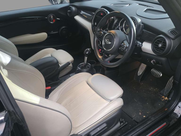 ONLY 39,000 MILES !!! - HUGE SPECIFICATION - STUNNING COLOUR COMBINATION - IMPECCABLE EXAMPLE - HPI CLEAR - FULL UP TO DATE SERVICE HISTORY - UP TO 36 MONTHS WARRANTY AVAILABLE - NATIONWIDE DELIVERY AVAILABLE - PART EXCHANGE WELCOME - OPEN 7 DAYS A WEEK - CALL US DIRECT ON [Phone number removed] - finished in stunning gleaming metallic midnight black paintwork, complimented with contrasting full cream leather interior, Refinements include, remote central locking, electric windows, electric heated power folding mirrors, leather trimmed JCW steering wheel with paddle shifts, full cream leather interior, adjustable steering column, keyless push button start stop, dual zone digital climate control, heated seats, heated front windscreen, heads up display, wide screen infotainment display, sat nav, enhanced bluetooth, usb aux ports, Harmon Kardon sound system, reverse camera and parking sensors, auto headlights, auto wipers, LED headlights, cornering lights, cruise control, auto dim rear view mirror, centre armrest, isofix, air bags, 18 inch 2 tone cup spoke alloy wheels, full JCW exterior pack, JCW chilli pack, alarm and immobiliser. What a beautiful low mileage example!! In a beautiful colour combination with a huge spectrum and low mileage which is backed up by a full service history which comprises of 6 Mini main dealer services with the recent full service carried out by AA. An impeccable example, drives like a new car, call now to reserve or view.