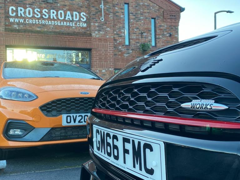 Crossroads Garage are delighted to offer another superb used vehicle; this brilliant Mini John Cooper Works which has just arrived in stock with us. COLOUR & TRIM - Our highly specified example is presented in stunning Midnight Black metallic paintwork with contrasting Red Roof. This JCW rides on upgraded 18"" John Cooper Works Cup Spoke alloy wheels. The interior is finished with upgraded JCW Carbon Black half leather upholstery on heated front sports seats. SOURCE - This Mini John Cooper Works was purchased by us directly from it's previous keeper. SERVICING - Our fantastic example has covered just 52000 miles and comes with a Full Service History. We will supply this car with a fresh 12 Months MOT with no advisories. CONDITION - This Mini has been well cared-for and is in excellent condition. It will be provided with our comprehensive parts & labour warranty. SPECIFICATION - This premium hot hatchback has 230 BHP and a fantastic list of upgraded features worth over £6k; including, 6-Speed Sport Manual Gearbox, Mini Central Display Widescreen With Illuminated Ring, Apple CarPlay With Satellite Navigation, Visual Boost Radio, Heated Seats, Chili Pack, Variable Damper Control, Adaptive Suspension, Rear Parking Sensors With Optical Display, John Cooper Works Roof Spoiler, LED Headlights, Mini Excitement Pack, Selectable Driving Modes, Storage Compartment Pack, Interior Lighting Package, Cruise Control, Dual-Zone Climate Control, Privacy Glass, Bluetooth Audio & Handsfree Telephone, DAB Radio, USB Input, Electric Door Mirrors, and more besides. WHAT TO EXPECT FROM US - Fabulous finance packages and the comfort of knowing your car is being supplied by a multi award-winning dealer including Trading Standards Retailer of the Year and we have customer feedback scores to be proud of. All of our vehicles are prepared to an high standard by our team of skilled technicians and will be valeted ready for collection. We take pride in our efforts to make this the most enjoyable car-buying experience you'll ever have. Please call and speak to James, Alan, Dean or Simon who'll be able to answer any questions you have, to reserve this wonderful example today or to book a viewing. Please remember to bring a valid Full Driving Licence with you. Thank You.