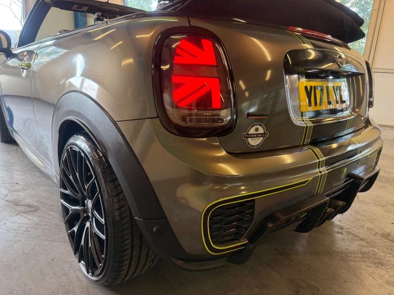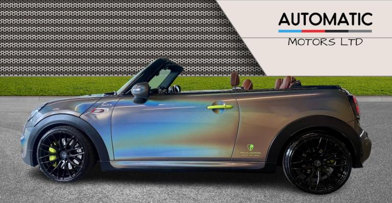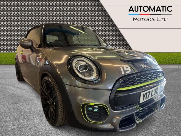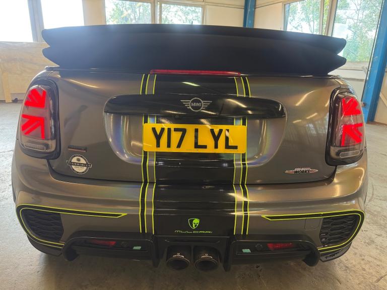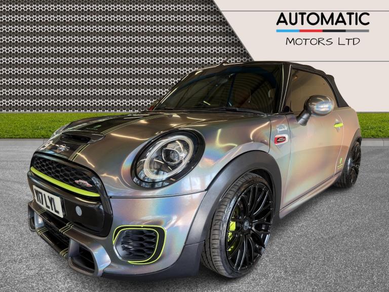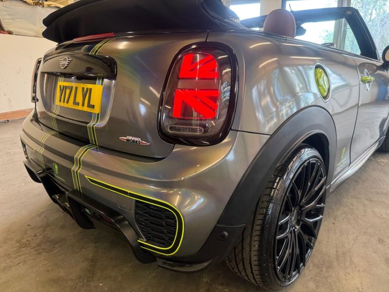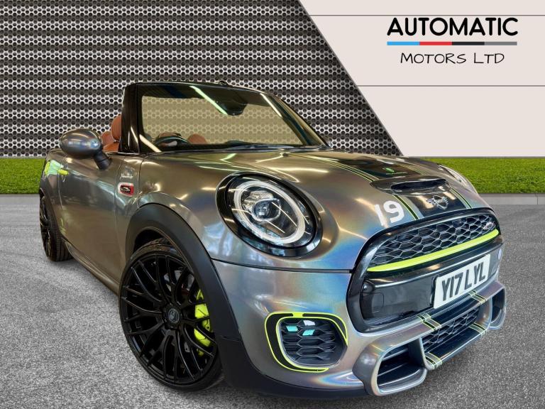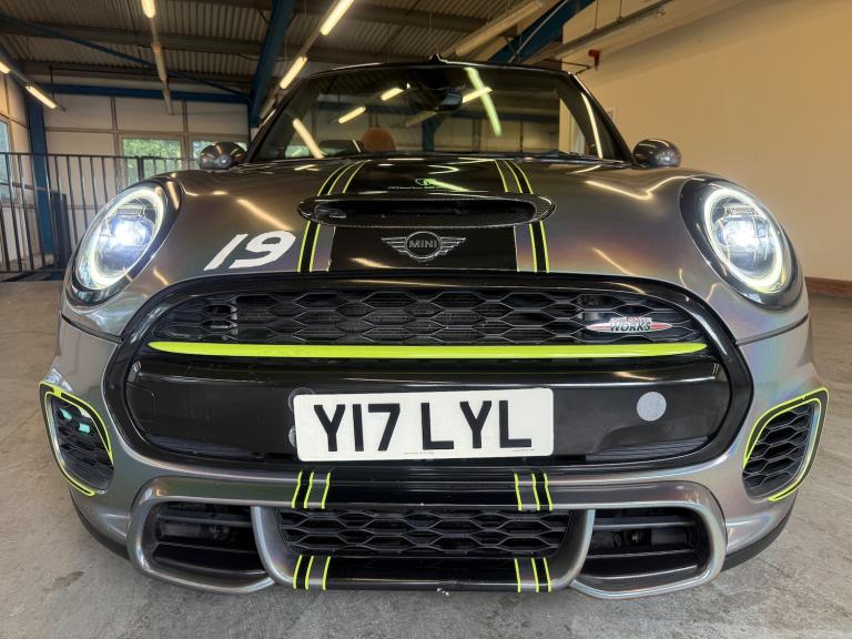 1 OWNER FROM NEW, 2 KEYS, ULEZ FREE, FRESH SERVICE (TOTAL 2 SERVICES), FRESH MOT, NAVIGATION, BLUETOOTH, LEATHER SEATS, Modified/Uprated Exh.System, Body Wrap, Modified Part(s) - Suspension/Brakes, Modified Part(s) - Engine (Stage 2), Modified Part(s) - Wheels Features Include: , 12volt socket in front centre console, dab tuner, intelligent emergency calling - e-call, mini teleservices, speakers - two mid range in front doors and two woofers under front seats and two speakers in rear side trims, 17in alloy wheels - john cooper works track spoke - silver, brand logo mini, chrome contents exterior, chrome-plated fuel filler cap in rear right side panel - linked to central locking, circulating stainless steel waist seal finishers, electric windows - switch in front door trim, engine scoop in body colour, exhaust tailpipe - special design with bevelled tailpipe stainless steel, heated mirrors and windscreen washer jets, heated rear window, john cooper works aerodynamic kit, mini mobility system, mirror caps in body colour, model logo, radiator grille - chrome border with honeycomb structure in black matt, rear fog light, security locking wheel bolts, side scuttles chrome-plated with john cooper works logo in high gloss with red boarder with integrated direction indicator white, sills - bumper edges - wheel arch cover in black band in matt black, soft-top black, soft-top operation - fully electric fabric hood with integrated folding fabric hood-sliding roof, sun protection glazing, tailgate handle - high gloss black, white indicators, 3 point seatbelts on all seats, airbags, alarm and immobiliser - thatcham cat 1, anti-lock braking system - abs, brake system, crash sensor, driving dynamic control systems, dynamic brake lights, dynamic stability control - dsc, ebd - electronic brake-force distribution, front passenger isofix and airbag de-activation switch, locking system with central locking, roll-over protection system, 3rd brake light, headlights and daytime running lights - led, 4 lashing eyes in luggage compartment, air conditioning - manual, chrome contents interior, colour line - carbon black, cupholders - two in front and one in the rear centre console, door sill finishers - metal look and lettering - john cooper works, easy load function, finisher around the mini central instrument, foldable rear backrest and 50:50 split, gearshift lever knob - leather, gearshift-selector lever and handrake lever gaiters in sensatec artificial leather with additional