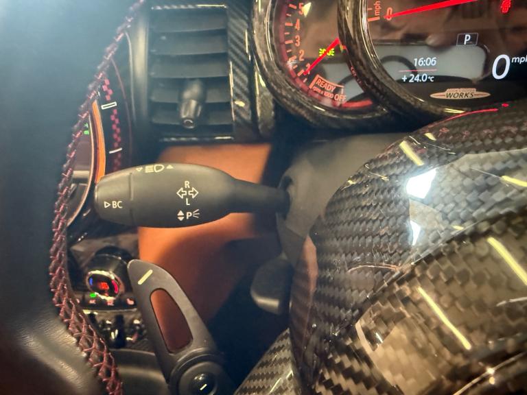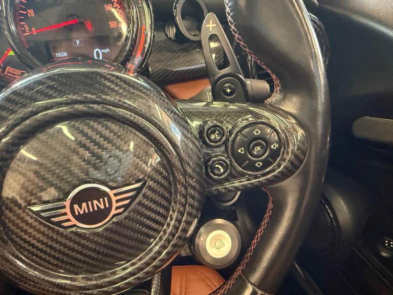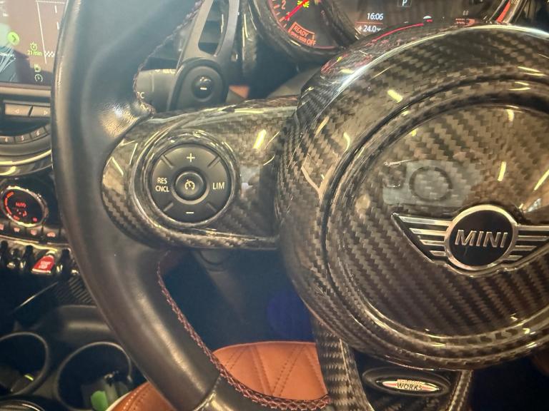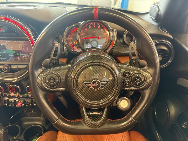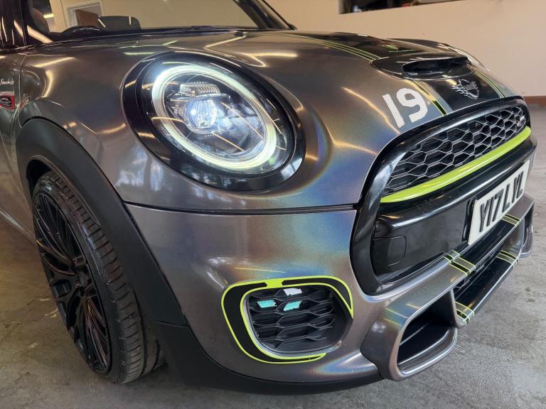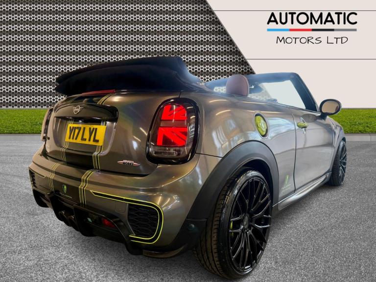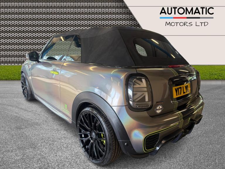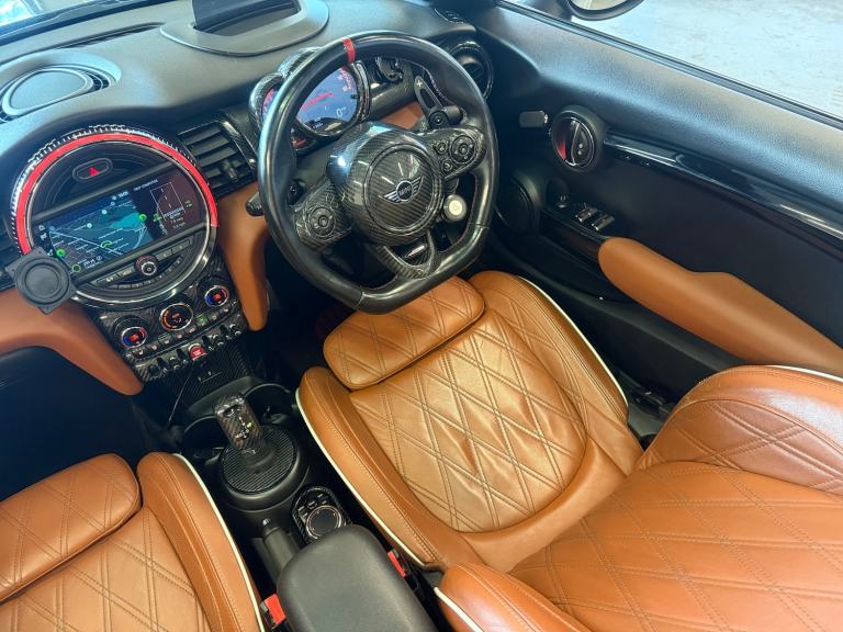 1 OWNER FROM NEW, 2 KEYS, ULEZ FREE, FRESH SERVICE (TOTAL 2 SERVICES), FRESH MOT, NAVIGATION, BLUETOOTH, LEATHER SEATS, Modified/Uprated Exh.System, Body Wrap, Modified Part(s) - Suspension/Brakes, Modified Part(s) - Engine (Stage 2), Modified Part(s) - Wheels Features Include: , 12volt socket in front centre console, dab tuner, intelligent emergency calling - e-call, mini teleservices, speakers - two mid range in front doors and two woofers under front seats and two speakers in rear side trims, 17in alloy wheels - john cooper works track spoke - silver, brand logo mini, chrome contents exterior, chrome-plated fuel filler cap in rear right side panel - linked to central locking, circulating stainless steel waist seal finishers, electric windows - switch in front door trim, engine scoop in body colour, exhaust tailpipe - special design with bevelled tailpipe stainless steel, heated mirrors and windscreen washer jets, heated rear window, john cooper works aerodynamic kit, mini mobility system, mirror caps in body colour, model logo, radiator grille - chrome border with honeycomb structure in black matt, rear fog light, security locking wheel bolts, side scuttles chrome-plated with john cooper works logo in high gloss with red boarder with integrated direction indicator white, sills - bumper edges - wheel arch cover in black band in matt black, soft-top black, soft-top operation - fully electric fabric hood with integrated folding fabric hood-sliding roof, sun protection glazing, tailgate handle - high gloss black, white indicators, 3 point seatbelts on all seats, airbags, alarm and immobiliser - thatcham cat 1, anti-lock braking system - abs, brake system, crash sensor, driving dynamic control systems, dynamic brake lights, dynamic stability control - dsc, ebd - electronic brake-force distribution, front passenger isofix and airbag de-activation switch, locking system with central locking, roll-over protection system, 3rd brake light, headlights and daytime running lights - led, 4 lashing eyes in luggage compartment, air conditioning - manual, chrome contents interior, colour line - carbon black, cupholders - two in front and one in the rear centre console, door sill finishers - metal look and lettering - john cooper works, easy load function, finisher around the mini central instrument, foldable rear backrest and 50:50 split, gearshift lever knob - leather, gearshift-selector lever and handrake lever gaiters in sensatec artificial leather with additional