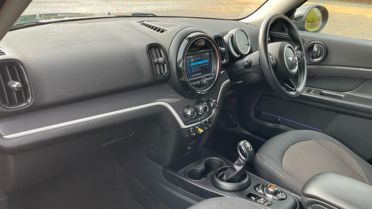 DAB TunerVisual Boost RadioCondition Based ServiceCruise Control with Brake FunctioneDrive ButtonMINI Driving ModesOn-Board ComputerPDC - Park Distance Control - RearPerformance ControlExterior Mirrors - Aspheric on Drivers Side - Electrically AdjustableHeated Front Windscreen Washer JetsMirror Caps in Body ColourModel Logo Countryman in ChromeRear Fog LightRoof in Body ColourRoof Rails - SilverRoof Spoiler Painted in Roof ColourSecurity Locking Wheel BoltsTailgate Handle - High Gloss BlackWhite Indicators3rd Brake LightDaytime Driving LightsFront Fog LightsHalogen Lights for Low Beam and High Beam HeadlightsRain Sensor and Automatic Headlight ActivationAir Conditioning - ManualCharging Flap in Side Wall - Front LeftColour Line - Carbon BlackDoor Sill Finishers - Metal Look and Model Dependent LetteringFloor MatsFoldable Rear Backrest 40:20:40Front Centre ArmrestInterior Light PackInterior Mirror - Mechanical Anti-DazzleInterior Trim - Hazy GreyLashing Eyes in Luggage CompartmentMechanical Seat Adjustment for Drivers Seat and Passengers SeatMINI Excitement PackMultifunction Controls for Steering WheelPassenger Seat Height AdjustablePersonal ProfileSport Leather Steering WheelSport Seats for Driver and Front PassengerTailgate Gas Struts Assist When Opening and Holding In An Opened PositionTool Kit in Luggage Compartment17in Alloy Wheels - Light SpokeAirbags for Driver and Front PassengerBluetooth Hands Free Function with USB AudioBody Coloured Fuel Filler Cap in Rear Right Side Panel - Linked to Central LockingBrake Pad Wear IndicatorChrome Bezels around Rear Lights and HeadlightsCupholders - Two in FrontDecorative Rings Surrounding Round Instruments in Chrome PlatedDoor Handles - Chrome PlatedDoor Handles - Interior - Chrome PlatedDTC - Dynamic Traction Control with EDLC - Electronic Differential Lock ControlDynamic Brake Lights and 3rd Brake Light in LED Technology in Roof SpoilerElectronic Parking BrakeEmbellisher at Bottom Edge of All Windows - Chrome PlatedEngine Scoop in Body ColourExhaust Tailpipe - Visible - Single - Round with Chrome FinisherExternal Visible VINFollow Me Home FunctionFuel Pump Automatic Cut-Off in Crash SituationGearshift-Selector Lever and Handrake Lever Gaiters in SensatecHeadlight - Beam-Throw Control Electrical with Manual AdjustmentHeadliner - Satellite GreyHeadrests For All Seats - Manually AdjustableHeated Rear Window with Automatic DeactivationHeater with