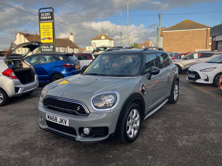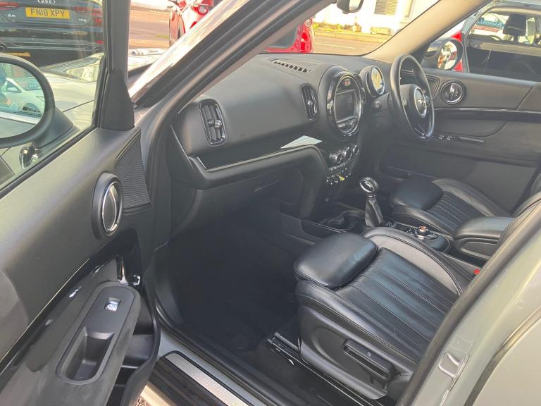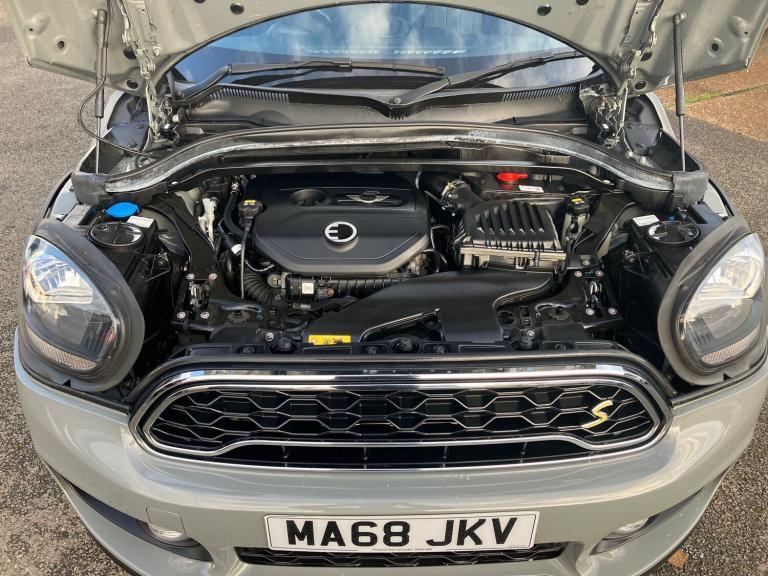 A Superlative 2018 Mini Countryman Cooper SE 1.5 7.6kWh GPF SUV finished in Grey , with mileage of 60,000 and an MOT that expires on 01/10/2026. Plug-in hybrid SUV with a 1.5 petrol engine and electric motor, All -wheel drive, and has a Euro 6 compliant engine. It produces 224 ps and has a 7.6kW battery, with an all-electric range of up to 26 miles. Key features include Automatic transmission , Navigation system with Apple CarPlay,Bluetooth connectivity,DAB radio,Heated Front seats, Rear-view camera,a 5-door ,Electrically Folding Exterior Mirrors, Moonwalk Grey exterior with Black Roof and Mirror Caps, Tyre Repair Kit.Praised for its refinement, high build quality and impressive performance, and fun handling,If you're in the market for a versatile and efficient SUV, this Mini Countryman is the perfect choice., Features Include: , 12 volt socket in front centre console, dab tuner, navigation pack, radio mini, speakers - 2 central bass speakers under the front seats, speakers - 4 broadband speakers in the trim panels of each front and rear door, visual boost radio, 17in alloy wheels - imprint spoke, body coloured fuel filler cap in rear right side panel, brand logo mini, chrome contents exterior, circulating stainless steel waist seal finishers, electric windows, exhaust tailpipe - left and right with chrome finisher, exterior mirrors - aspheric on drivers side - electrically adjustable, heat protection - sun protection glazing, heated front windscreen washer jets, heated rear window, heated windscreen washer jets, mirror caps in body colour, model logo countryman in chrome, radiator grille - chrome border with honeycomb structure in matt black with yellow s logo, rear fog light, roof rails - silver, roof spoiler painted in roof colour, roof in body colour, security locking wheel bolts, side scuttle frame chrome-plated with mini e logo and integrated turn indicator, sills - bumper edges - wheel arch cover in black band in matt black, tailgate handle - high gloss black, white indicators, air conditioning - manual, charging flap in side wall - front left, chrome contents interior, colour line - carbon black, cupholders - two in front centre console, door sill finishers - metal look and model dependent lettering, foldable rear backrest 40:20:40, gear knob - leather badge in black high-gloss and clasp in chrome high-gloss, gearshift-selector lever and handbrake lever gaiters in leatherette, headliner, headrests - all seats, instrument cluster, interior