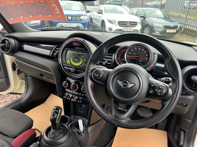 MINI HATCHBACK AUTOMATIC 1.5 1499 GT EDITION John cooper works spec.huge spec car/GREAT EXAMPLE IN WHITE WITH FULL SERVICE HISTORY AND 2 X KEYS/, 3rd brake light, Anti-lock Brake System (ABS), Electronic Stability Program (ESP), One touch indicator, Power assisted brakes, Tyre pressure monitor, Hands-free Bluetooth system, Telephone, Voice control for telephone, Autopilot function, Check control system, Configurable dashboard display, Cruise control,Service interval indicator, Steering wheel audio controls, Steering wheel with cruise control operation, Tool kit, Travel data recorder, Trip computer, Power Assisted Steering, Rev counter,Traction control, Digital radio, Radio/CD, USB input, Body coloured bumpers, Rear boot,Door mirror indicators, Front fog lights, Air conditioning, Front centre armrest, Front head restraints, Front interior 12V power outlet, Rear headrests, Steering wheel manually adjustable,Steering wheel rake adjustment, Steering wheel reach adjustment,roof spoiler/Leather gear selector trim,half leather seats/Leather interior door trim, Leather steering wheel, Electric door mirrors, Metallic Paint, Rear parking sensor,front sensors/3x3 point rear seat belts,Active front head restraints, Drivers airbag, Isofix child seat anchor points, Manual child proof locks, Passenger airbag, Rear centre headrest, Height adjustable drivers seat, Lumbar support, Alarm, Central locking, Immobiliser, Remote central locking,Alloy wheels, Front electric windows, Rear electric windows, Rear wiper/56,000 miles f/s/h/comes with 12 month mot and full engine service/6 months warranty/finance available,delivery can be arranged/buy with confidence,read our 5star reviews,ms car sales Cupar ky154rd