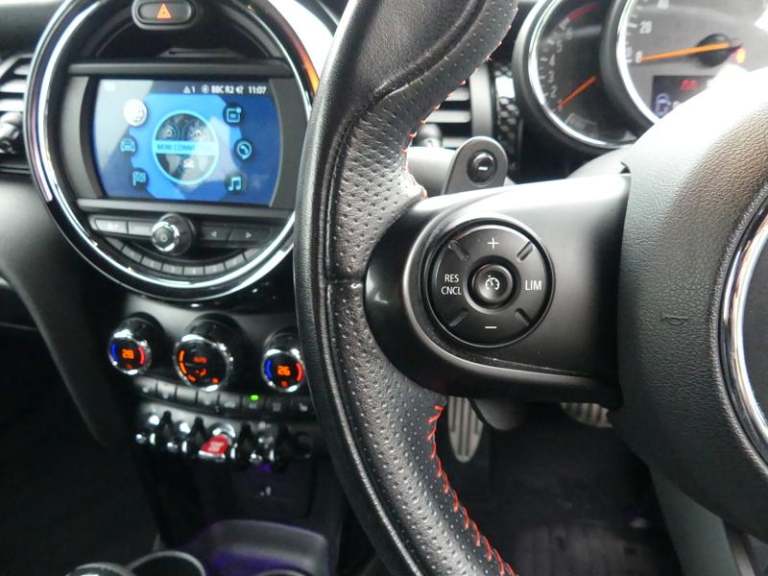 12V Socket in Centre Console, 17in Alloy Wheels - Track Spoke in Black, 3 Point Seatbelts on all Seats, 4 Lashing Eyes in Luggage Compartment, 4 Speakers - in Front Door Trims and Underneath Front Seats, 6.5in Screen with LED Ring, Air Conditioning - Manual, Airbags, Alarm System, Anti-Lock Braking System - ABS, Automatic Headlight Activation Switch, Bluetooth for Compatible Mobile Phone - with Audio Streaming, Bonnet Scoop, Carbon Black Colour Line - Knee Roll and Door Armrests, Chrome Highlights, Cruise Control with Brake Function, Cup Holders, Door Storage Compartments, Dynamic Brake Lights, Dynamic Stability Control - DSC, Electric Windows - Front, Electro-Mechanical Steering with Speed Dependant Steering Assistance, Electronic Vehicle Immobiliser, Exhaust Tailpipe - Double - Central with Chrome Finishers, FM Tuner and DAB Digital Radio, Foldable Rear Seats 60-40, Front and Rear ISOFIX - including Front Passenger Airbag Deactivation, Fuel Filler Cap in Chrome, Gearshift Paddles, Glove Compartment, Headliner - Anthracite, Heated Rear Window, Heated Windscreen Washer Jets, Instrument Cluster, Interior Lighting, Interior Surface - Black Chequered, John Cooper Works Aerodynamic Kit, John Cooper Works Leather Steering Wheel, John Cooper Works Roof Spoiler, John Cooper Works Sport Seats, LED Headlights with Closed Ring as Daytime Driving Lights, LED Reading Lights - Vanity Mirror Lights - Front Footwell Lights - Spotlights on Front Seats, Leatherette Gearshift Lever and Handbrake