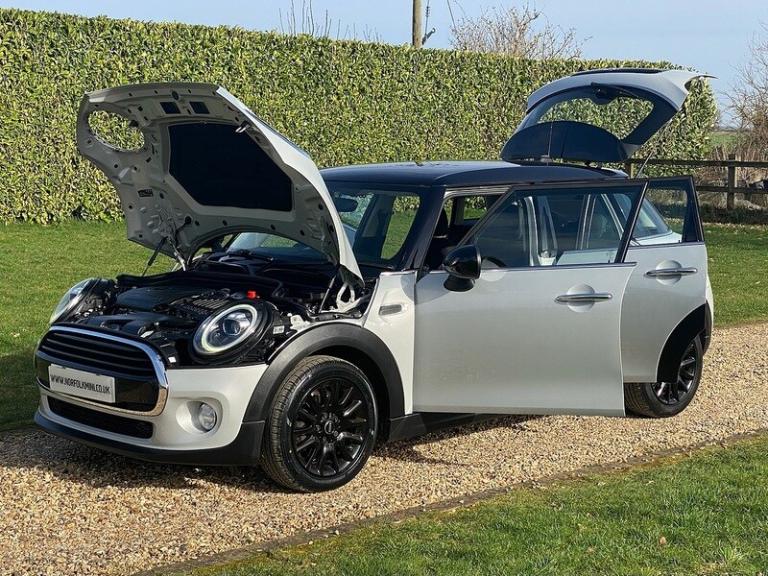 A great specification Mini Cooper finished in Metallic white silver with black roof and mirror caps. In addition to the Pepper pack, this Mini has the optional Satellite Navigation pack with Apple car play, 16"" Gloss black victory spoke alloy wheels, Rear carrier preparation, and Leather multifunction steering wheel with Cruise control. Pepper Pack includes Passenger seat height adjustment, Storage compartment pack, Excitement pack, Onboard computer, Leather steering wheel, Dual zone Climate control , Auto dimming rear view mirror, Auto lights, White indicator lenses, Fog lights, and DRL's. Standard features also include Bluetooth connectivity, ABS brakes, Electric windows, Electric mirrors, Remote central locking, Power steering, and Multiple airbags. The car has a full service history and MOT until February 2027 with no advisories. Keep this vehicle in super condition, ask about our lifetime paintwork guarantee. Buy with confidence, this vehicle comes complete with Full Book Pack, HPI clear certificate, Two keys, and a comprehensive used car inspection. Any trial or inspection welcome, and a warranty is included. Finance is available subject to status. Viewings by appointment..Pepper Pack,Apple Car Play,Navigation,16in Alloy Wheels - Victory Spoke in Black,Rear Accessory Carrier Preparation,PDC - Park Distance Control - Rear,Rain Sensor and Automatic Headlight Activation,Cruise control with Brake function,Sport Leather Steering Wheel,DAB Digital Radio,Roof and Mirror Caps - Black,Air Conditioning - Automatic Dual Zone,Interior Light Pack,MINI Excitement Pack,Storage Compartment Pack,Firework Cloth - Carbon Black,White Silver, 12Volt Socket in Front Centre Console, Bluetooth Hands Free Function with USB Audio, DAB Tuner, Intelligent Emergency Calling - E-Call, MINI TeleServices, Radio with Four-Line Display, Speakers - Two Mid Range in Front Doors and Two Woofers under Front Seats, Brake Pad Wear Indicator, Condition Based Service, On-Board Computer, Revolution Counter, Speedometer on Steering Column, TPWS - Tyre Pressure Warning System, 15in Alloy Wheels - Heli in Silver, Body Coloured Fuel Filler Cap in Rear Right Side Panel - Linked to Central Locking, Chrome Bezels around Rear Lights and Headlights, Door Handles - Chrome Plated, Exhaust Tailpipe - Visible - Single - Round - Left Hand Side with Chrome Finisher, Exterior Mirrors - Aspheric on Drivers Side - Electrically Adjustable, Front Side Indicators - Orange, Heated Mirrors and Windscreen Washer Jets, Heated Rear Window with Automatic Deactivation, Heated Window Heater, MINI Mobility System, Mirror Caps in Body Colour, Radiator Grille - Chrome Border and Slats in High-Gloss Black, Rear Fog Light, Roof in Body Colour, Roof Spoiler Painted in Roof Colour, Security Locking Wheel Bolts, Side Scuttles Black with Integrated Direction Indicator Orange, Sills - Bumper Edges - Wheel Arch Cover in Black, Stainless Steel Embellisher at Bottom Edge of all Windows, Tailgate Handle - High Gloss Black, White Indicators, Window Lifts - Electrical for Drivers and Front Passengers Sides, 3rd Brake Light - Red, Follow Me Home Function, Headlight - Beam-Throw Control Electrical with Manual Adjustment, Headlights and Daytime Running Lights - LED, LED Fog Lights, Air Conditioning - Manual, Automatic Door Window Lowering by Approx 6mm When Door Opens, Boot Release via Remote Control, Colour Line - Carbon Black, Cupholders - Two in Front and One in the Rear Centre Console, Decorative Rings Surrounding Dashboard Instruments in Chrome Plated, Door Sill Finishers - Metal Look and Model Dependent Lettering, External Visible VIN, Foldable Rear Backrest 60-40, Gearshift Lever Knob - Plastic, Gearshift-Selector Lever and Handbrake Lever Gaiters in Sensatec Artificial Leather, Handbrake Lever Grip - Plastic, Headliner - Satellite Grey, Headrests For All Seats - Manually Adjustable, Heater with Mechanical Control and Recirculating-Air Button, Interior Door Handles - Chrome Plated, Interior Lights - Integrated into Centre Front Headliner, Interior Mirror - Mechanical Anti-Dazzle, Interior Surface - Haze Grey, Interior Trim - Hazy Grey, Lashing Eyes in Luggage Compartment, Luggage Compartment - Light, Mechanical Seat Adjustment - Six Way Drivers Seat, Microfilter, MINI Central Display with Illuminated Ring, Multifunction Controls for Steering Wheel, Non Smoker Package, Oddments Trays at Rear - Right and Left, Personal Profile, Reversing Light, Start-Stop Button with Keyless Start, Steering Wheel - 2-Spoke Plastic, Steering Wheel Column Adjustment Mechanically in Height and Length, Storage Options, Sun Visors with Integrated Vanity Mirrors on Drivers and Passengers Sides, Tool Kit in Luggage Compartment, Twin Horns, MINIMALISM Fuel Saving Technology, Power Steering with Servotronic, 3 Point Seatbelts on all Seats, Airbags for Driver and Front Passenger - 6 Airbags as Standard, Alarm and Immobiliser - Thatcham CAT 1, Anti-Lock Braking System - ABS, Crash Sensor, DTC - Dynamic