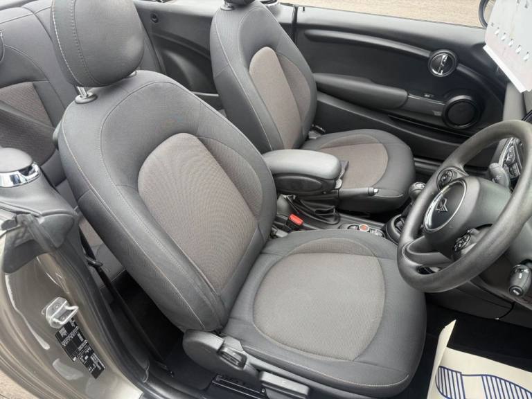 .12 Volt Socket in Front Centre Console, 15in Alloy Wheels - Heli Spoke, 3 Point Seatbelts on all Seats, 4 Lashing Eyes in Luggage Compartment, 6.5in Screen with LED Ring, Active Roll-Over Protection, Air Conditioning - Manual, Airbags, Alarm System, Anti-Lock Braking System - ABS, Bluetooth for Compatible Mobile Phone with Audio Streaming, Carbon Black Colour Line - Knee Roll and Door Armrests, Chrome Highlights, Cupholders, DAB Tuner and FM Tuner, Door Sill Strips - Metal with MINI, Dynamic Brake Lights, Dynamic Stability Control - DSC, Easy Load Function, Electric Windows - Front, Electro-Mechanical Steering with Speed Dependant Steering Assistance, Electronic Vehicle Immobiliser, Exhaust Tailpipe - Left with Chrome Finisher, Foldable Rear Backrest and 50:50 Split, Front Passenger ISOFIX and Airbag De-Activation Switch, Fuel Filler Cap in Body Colour, Fully Electric Black Soft Top with Integrated Sun-Roof Functionality, Gear-Change Indicator Display, Glove Compartment, Headlights - Automatic Lights-On, Heated Rear Window, Heated Windscreen Washer Jets, Instrument Cluster, Interior Lighting, Interior Trim - Hazy Grey, Keyless Go, LED Headlights with Closed Ring as Daytime Driving Lights, LED Reading Lights - Vanity Mirror Lights - Front Foot Well Lights - Spotlights on Front Seats, Leatherette Gearshift Lever and Handbrake Gaiters, MINI E-Call, MINI Logo Projection on Floor from Drivers Exterior Mirror, MINI TeleServices, Mechanical Seat Adjustment - Forward-Back and Backrest for Front Seats - Driver Seat Height Adjust, Mirror Caps in Body Colour, Model Logo Cooper on Right of Tailgate, Multifunction Controls for Steering Wheel, On-Board Computer, PDC - Park Distance Control - Rear, Radiator Grille - Chrome Border with Black High-Gloss Slats, Rain Sensor Window Wipers, Rear Fog Light, Rear LED Lights with Union Jack Design, Rear Passenger ISOFIX, Side Scuttle Panels with Integrated Indicators, Single Tone Fanfare Horn, Speakers - 4, Steering Column Height and Length Adjustment, Steering Wheel - 3-Spoke, Storage - Compartments in Doors, Sun Visor with Vanity Mirrors, Sun-Heat Protection Glass, TPWS - Tyre Pressure Warning System, Tool Kit in Luggage Compartment, White Indicators, Comfort Plus Pack, Firework Cloth - Carbon Black, Melting Silver