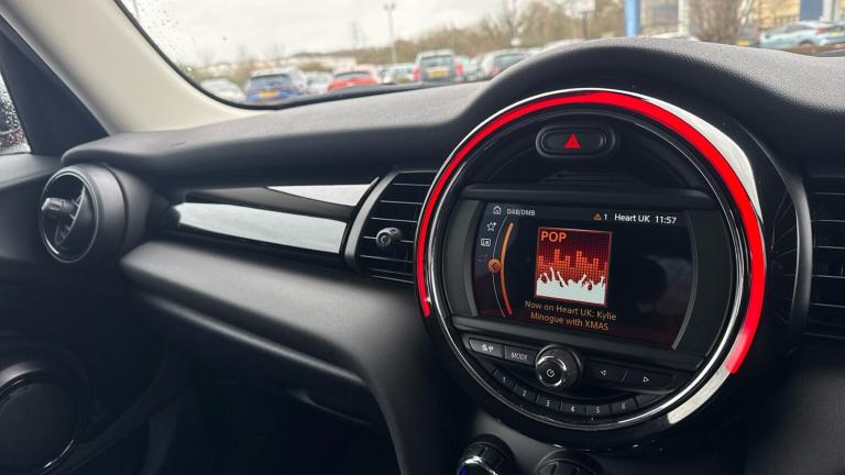 12V Socket in Centre Console6 Speakers - in Front Door Trims and Underneath Front Seats6.5in Screen with LED RingBluetooth for Compatible Mobile Phone - with Audio StreamingFM Tuner and DAB Digital RadioMINI E-CallMINI TeleServicesGear-Change Indicator DisplayOn-Board ComputerTyre Pressure Monitoring System15in Alloy Wheels - Heli SpokeElectric WindowsExhaust Tailpipe - Left with Chrome FinisherFuel Filler Cap in Body ColourHeated Rear WindowHeated Windscreen Washer JetsModel Logo Cooper on Right of TailgateRadiator Grille - Chrome Border with Black High-Gloss SlatsRear Fog LightRoof and Mirror Caps - Body-ColourSide Scuttle Panels with Integrated IndicatorsSun-Heat Protection GlassWhite Direction Indicators LightsAutomatic Headlight Activation SwitchLED Headlights with Closed Ring as Daytime Driving LightsMINI Logo Projection on Floor from Drivers Exterior MirrorRear LED Lights with Union Jack Design4 Lashing Eyes in Luggage CompartmentAir Conditioning - ManualCarbon Black Colour Line - Knee Roll and Door ArmrestsChrome HighlightsCup HoldersDoor Sill Strips - Metal with MINIDoor Storage CompartmentsFoldable Rear Seats 60-40Glove CompartmentHeadliner - Satellite GreyInstrument ClusterInterior LightingInterior Surface - Hazy GreyLeatherette Gearshift Lever and Handbrake GaitersLED Reading Lights - Vanity Mirror Lights - Front Footwell Lights - Spotlights on Front SeatsMechanical Seat AdjustmentMultifunction Controls for Steering WheelRain Sensor Window WipersStart-Stop Toggle including Keyless GoSteering Column Height and Length AdjustmentSteering Wheel - 3-SpokeSun Visor with Vanity MirrorsTool Kit in Luggage CompartmentElectro-Mechanical Steering with Speed Dependant Steering Assistance3 Point Seatbelts on all SeatsAirbagsAlarm SystemAnti-Lock Braking System - ABSDynamic Brake LightsDynamic Stability Control - DSCElectronic Vehicle ImmobiliserFront and Rear ISOFIX - including Front Passenger Airbag DeactivationRear Window WiperSingle Tone Fanfare Horn