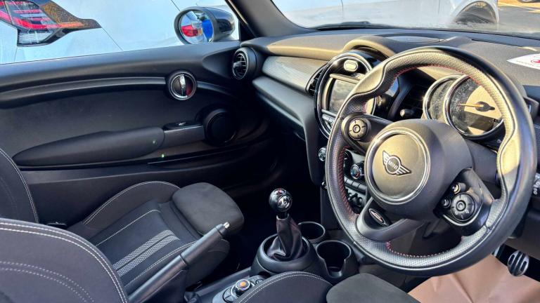 Dinamica-Cloth - Carbon Black, Navigation Pack, Pepper White, Roof and Mirror Caps - Black, 12V Socket in Centre Console, 4 Speakers - in Front Door Trims and Underneath Front Seats, 6.5in Screen with LED Ring, Automatic Headlight Activation Switch, Bluetooth for Compatible Mobile Phone - with Audio Streaming, Cruise Control with Brake Function, Electro-Mechanical Steering with Speed Dependant Steering Assistance, FM Tuner and DAB Digital Radio, Gear-Change Indicator Display, LED Headlights with Closed Ring as Daytime Driving Lights, MINI E-Call, MINI Logo Projection on Floor from Drivers Exterior Mirror, MINI Teleservices, On-Board Computer, Performance Control, Rear LED Lights with Union Jack Design, Tyre Pressure Monitoring System, 17in Alloy Wheels - John Cooper Works Track Spoke - Black, Electric Windows - Front, Exhaust Tailpipe - Left with Chrome Finisher, Fuel Filler Cap in Body Colour, Heated Rear Window, Heated Windscreen Washer Jets, John Cooper Works Aerodynamic Kit, John Cooper Works Roof Spoiler, Model Logo Cooper on Right of Tailgate, Radiator Grille - Chrome Border with Black High-Gloss Slats, Rear Fog Light, Roof and Mirror Caps - Body-Colour, Side Scuttle Panels with Integrated Indicators, Sun-Heat Protection Glass, White Indicator Lenses, 3 Point Seatbelts on all Seats, Airbags, Alarm System, Anti-Lock Braking System - ABS, Dynamic Brake Lights, Dynamic Stability Control - DSC, Electronic Vehicle Immobiliser, Front and Rear ISOFIX - including Front Passenger Airbag Deactivation, Rear Window Wiper, Single Tone Fanfare Horn, 4 Lashing Eyes in Luggage Compartment, Air Conditioning - Manual, Carbon Black Colour Line - Knee Roll and Door Armrests, Chrome Highlights, Cup Holders, Door Storage Compartments, Foldable Rear Seats 60-40, Glove Compartment, Headliner - Anthracite, Instrument Cluster, Interior Lighting, Interior Surface - Hazy Grey, John Cooper Works Leather Steering Wheel, John Cooper Works sport seats, LED Reading Lights - Vanity Mirror Lights - Front Footwell Lights - Spotlights on Front Seats, Leatherette Gearshift Lever and Handbrake Gaiters, Mechanical Seat Adjustment, Multifunction Controls for Steering Wheel, Rain Sensor Window Wipers, Start-Stop Toggle including Keyless Go, Steering Column Height and Length Adjustment, Sun Visor with Vanity Mirrors, Tool Kit in Luggage Compartment