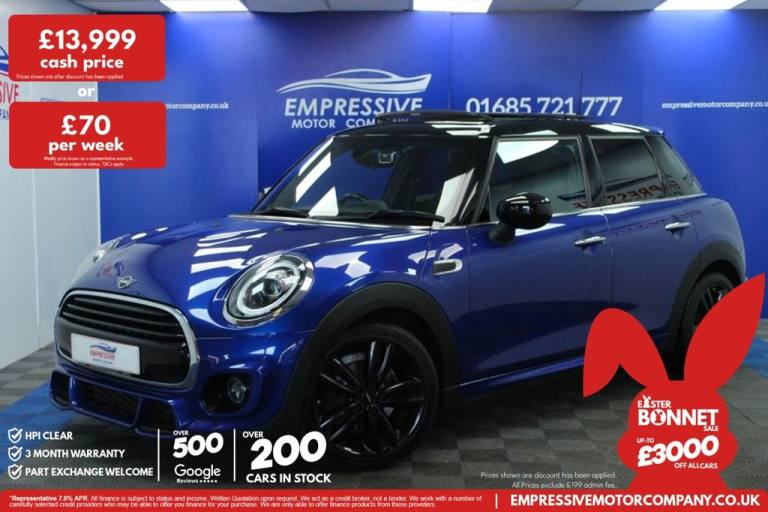 Experience the thrill of driving with this blue Mini Hatch 1.5 Cooper. Packed with a Navigation Pack and Sat Nav to make every journey a breeze, plus a Comfort Pack for added convenience. Enjoy the stylish Firework Cloth interior in Carbon Black and stay cool with air conditioning. LED headlights enhance both looks and visibility, while the 15in alloy wheels and Bluetooth connectivity round off this fun and practical hatchback. Perfect for city streets and open roads alike. 8 services recorded, last serviced on 17/02/2025 at 84,895 miles. MOT to 25/10/2026. Visit our website for service history, online valuation, full vehicle specification plus multiple images. This vehicle is VAT qualifying. Any feature/option specified here is from 3rd party data. We cannot guarantee the accuracy of any specification supplied by a 3rd party. We recommend that you physically check the specification of the vehicle on site prior to purchase. This information does not form part of the buying contract. Terms & Conditions apply. We have over 2,000 cars available from our 10 national branches, check our website to see all our stock. Our Trustpilot rating is 4.4/5 with over 9,000 reviews.