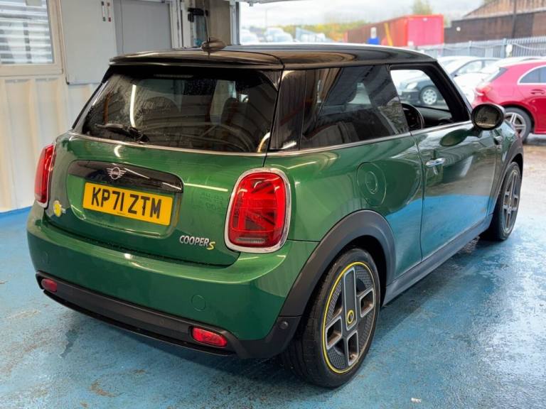 2 KEYS+2 CABLES+HALF LEATHER SEATS+PARK CONTROL+SH+1 OWNER FROM NEW+PARKING SENSORS++ALLOYS+CLIMATE+CRUISE+BLUETOOTH+MEDIA+NAV+USB+AUX+DAB+HPI CLEAR WITH VOSA MOT HISTORY, FULL DEALER FACILITIES+PART EXCHANGE WELCOME, CLEAN +GREAT DRIVE+GOOD MPG+AA CHECKED+The car is in very good condition in and out . Bodywork has no obvious dents or scratches . Interior is very clean without any obvious wear or tear to the seats or carpets.Tyres excellent ,Engine+gearbox in good order. This 2021 MINI Electric Hatch Cooper SE Level 2 is a superb example, having been owned by just one person from new. This electric vehicle boasts a 33 kWh battery offering a maximum range of 144 miles when new. Charging is convenient, with a full charge at home using a 7kW charger taking approximately 5 hours and 15 minutes, while rapid public charging can take it from empty to 80% in just 36 minutes. Notable features include the Navigation Pack with Apple CarPlay, rear Park Distance Control with parking assistance, and Comfort Access System for keyless entry. Youll also benefit from a rear view camera and LED headlights with distinctive ring daytime running lights. Experience the responsive performance of this MINI Electric Hatch, which accelerates from 0 to 60mph in a swift 7.3 seconds. This impressive acceleration highlights its dynamic driving capabilities, setting it apart from many other electric vehicles. The combination of its efficient electric powertrain, advanced technology, and the practical features like the rear camera and parking sensors make this Cooper SE Level 2 a compelling choice for those seeking an engaging and modern driving experience..12V Socket in Centre Console, 17in Alloy Wheels - Electric Spoke - Two-Tone, 17in Alloy Wheels - Tentacle Spoke in Black, 3 Point Seatbelts on all Four Seats, 4 Lashing Eyes in Luggage Compartment, 8.8in Touchscreen with LED Ring, AC-DC Charging, Acoustic Pedestrian for Protection, Air Conditioning - Automatic - with Two Zone Control, Airbags - x6 - Front - Side - Head and Seatbelt Tensioners, Alarm System, Ambient Lighting, Anti-Lock Braking System - ABS, Bluetooth for Compatible Mobile Phone with Audio Streaming, Bonnet Scoop, Brake Energy Recuperation Toggle Switch, British Racing Green, Charging Flap Embossed with e Logo in Body Colour, Charging Flap on Drivers Side Rear Panel - Embossed with E-Logo - Includes LED Light Indicating Charging Status, Chrome Highlights, Cloth-Leatherette - Black Pearl, Comfort Access System, Cruise Control, Cup Holders, Digital Instrument Cluster, Door Sill Strips - Metal with Cooper S, Door Storage Compartments, Driving Assistant Pack, Driving Modes, Dynamic Brake Lights, Dynamic Stability Control - DSC, Electric Windows - Front, Electro-Mechanical Steering with Speed Dependant Steering Assistance, Electronic Parking Brake, Electronic Vehicle Immobiliser, Floor Mats, FM Tuner and DAB Digital Radio, Foldable Rear Seats 60-40, Folding and Auto Dimming Mirrors, Front and Rear ISOFIX - including Front Passenger Airbag Deactivation, Front Armrest, Glove Compartment, Headliner - Anthracite, Heat Pump, Heated Rear Window, Heated Windscreen Washer Jets, Interior Light Pack, Interior Lighting in Front of Headliner, Interior Style - Dark, Interior Trim - Piano Black, LED Headlights with Closed Ring as Daytime Driving Lights, Luggage Compartment - Light, Mechanical Seat Adjustment for Drivers Seat and Passengers Seat, MINI Excitement Pack, Model Logo Cooper S on Right of Tailgate, Multifunction Steering Wheel, Navigation Pack, On-Board Computer, PDC - Park Distance Control - Rear, Performance Control, Radiator Grille including E Badge, Rain Sensor and Automatic Headlight Activation, Rear Fog Light, Rear LED Lights with Union Jack Design, Rear View Camera, Rear Window Wiper, Roof and Mirror Caps - Black, Roof and Mirror Caps - Body-Colour, Seats - Heated, Side Scuttle Panels with Integrated Indicators - with E Badge, Speakers - 4, Sport Leather Steering Wheel, Sport Seats including Manual Adjustment for Thigh Rests, Start-Stop Toggle including Keyless Go, Steering Column Adjustment - Height and Length, Storage - Pockets on Back of Fr