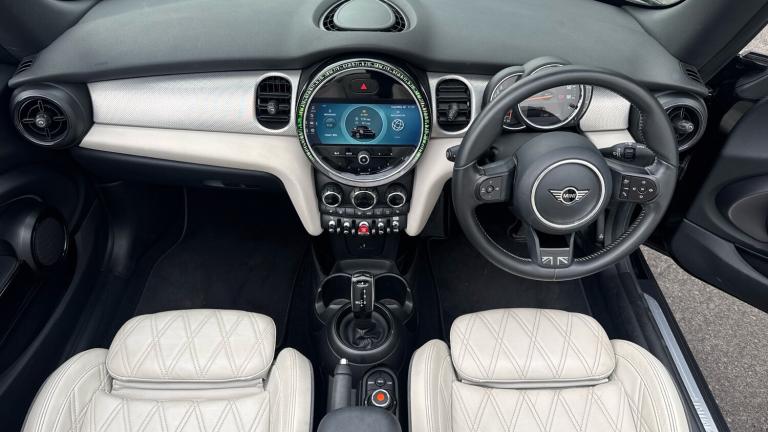 Available now at Vertu MINI Bridgwater, this stunning MINI Convertible Cooper Exclusive comes in sleek Midnight Black with a luxurious Leather Chester Satellite Grey interior. It sits on eye-catching 18"" MINI Yours British Spoke Alloys and features an electric convertible roof—perfect for enjoying sunny days. Stay warm with heated front sport seats and reduce wind disturbance with the wind deflector, part of the Convertible Pack. The Comfort Plus Pack adds convenience with Comfort Access and a Reversing Camera, making every drive more enjoyable. This MINI offers the perfect mix of sporty fun and refined comfort—come down to Vertu MINI Bridgwater to take it for a test drive and experience it for yourself. Don't forget to ask us for a personalised video!.Velour floor mats, Electric windows, DSC - Dynamic Stability Control, Mini E-call, Rear park distance control, Automatic start/stop function with brake energy recuperation, On board computer, Fully variable valve control, FM tuner and DAB digital radio, Side scuttle panel with integrated indicator, White indicator lenses, Manual air conditioning, Cupholders, LED reading lights, vanity mirror lights, front foot well light and spotlight on front seats, Convertible pack with comfort access - Mini Convertible, Tyre pressure monitoring system, Front and rear head restraints, Keyless Go, Performance Control, Sunvisors with vanity mirrors