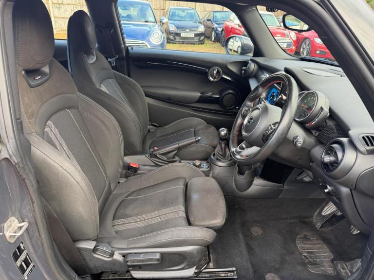 This 2021 MINI Hatch Cooper S Sport is a superb example of a well maintained vehicle. It features a powerful 2.0 litre petrol engine and meets Euro 6 emission standards. This particular model comes with striking Black Bonnet Stripes and benefits from LED headlights that include a distinctive closed ring design for daytime running lights, along with automatic activation. Inside, you'll find manual air conditioning to keep you comfortable and Bluetooth connectivity for your compatible mobile phone, complete with audio streaming capabilities. Experience exhilarating performance with this MINI Hatch Cooper S Sport, capable of accelerating from 0 to 62 miles per hour in just 6.8 seconds. This impressive acceleration demonstrates its sporty nature and superior responsiveness compared to other vehicles in its class. The Cooper S Sport trim level ensures a dynamic driving experience, making every journey engaging and enjoyable. Features Include: , bonnet stripes - black, dinamica-cloth - carbon black, 12v socket in centre console, 17in alloy wheels - john cooper works track spoke - black, 3 point seatbelts on all seats, 4 lashing eyes in luggage compartment, 4 speakers - in front door trims and underneath front seats, 6.5in screen with led ring, air conditioning - manual, airbags, alarm system, anti-lock braking system - abs, automatic headlight activation switch, bluetooth for compatible mobile phone - with audio streaming, bonnet scoop, carbon black colour line - knee roll and door armrests, chrome highlights, cruise control with brake function, cup holders, door storage compartments, dynamic brake lights, dynamic stability control - dsc, electric windows - front, electro-mechanical steering with speed dependant steering assistance, electronic vehicle immobiliser, exhaust tailpipe - double - central with chrome finishers, fm tuner and dab digital radio, foldable rear seats 60-40, front and rear isofix - including front passenger airbag deactivation, fuel filler cap in chrome, gear-change indicator display, glove compartment, headliner - anthracite, heated rear window, heated windscreen washer jets, instrument cluster, interior lighting, interior surface - black chequered, john cooper works aerodynamic kit, john cooper works leather steering wheel, john cooper works roof spoiler, john cooper works sport seats, led headlights with closed ring as daytime driving lights, led reading lights - vanity mirror lights - front footwell lights - spotlights on front
