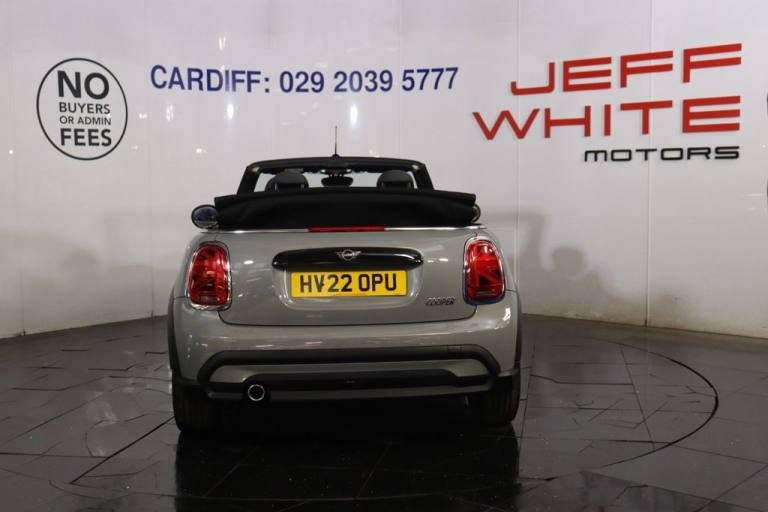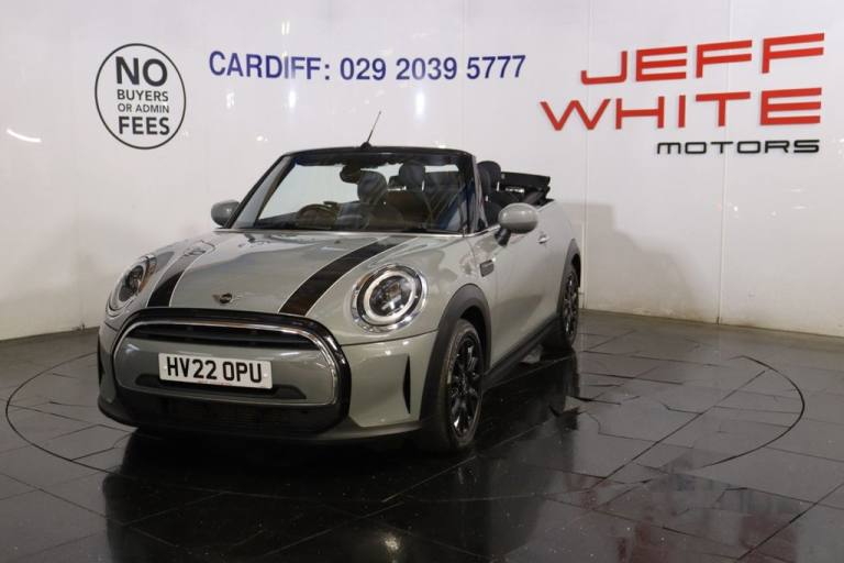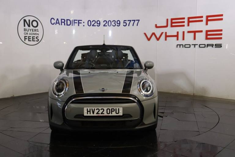 NO BUYERS FEES - One owner, service history, spare key supplied SAT NAV CRUISE.12 Volt Socket in Front Centre Console, 15in Alloy Wheels - Heli Spoke, 3 Point Seatbelts on all Seats, 4 Lashing Eyes in Luggage Compartment, 8.8in Touch Screen with LED Ring, Active Roll-Over Protection, Air Conditioning - Manual, Airbags, Alarm System, Anti-Lock Braking System - ABS, Apple Carplay, Automatic Headlight Activation Switch, Bluetooth for Compatible Mobile Phone with Audio Streaming, Carbon Black Colour Line - Knee Roll and Door Armrests, Chrome Highlights, Convertible Pack, Cruise Control with Brake Function, Cupholders, DAB Tuner and FM Tuner, Door Sill Strips - Metal with MINI, Dynamic Brake Lights, Dynamic Stability Control - DSC, Easy Load Function, Electric Windows - Front, Electro-Mechanical Steering with Speed Dependant Steering Assistance, Electronic Vehicle Immobiliser, Exhaust Tailpipe - Left with Chrome Finisher, Flexible Car Sharing Preparation, Floor Mats - Velour, Folding Rear Seats - 50-50, Front Passenger ISOFIX and Airbag De-Activation Switch, Fuel Filler Cap in Body Colour, Fully Electric Black Soft Top with Integrated Sun-Roof Functionality, Gear-Change Indicator Display, Glove Compartment, Heated Rear Window, Heated Windscreen Washer Jets, Instrument Cluster, Interior Lighting, Interior Trim - Piano Black, Keyless Go, LED Headlights with Closed Ring as Daytime Driving Lights, LED Reading Lights - Vanity Mirror Lights - Front Foot Well Lights - Spotlights on Front Seats, Leatherette Gearshift Lever and Handbrake Gaiters, MINI E-Call, MINI TeleServices, Mechanical Seat Adjustment - Forward-Back and Backrest for Front Seats - Driver Seat Height Adjust, Mirror Caps in Body Colour, Model Logo Cooper on Right of Tailgate, Multifunction Controls for Steering Wheel, On-Board Computer, PDC - Park Distance Control - Rear, Performance Control, Radiator Grille - Chrome Border with Black High-Gloss Slats, Rain Sensor Window Wipers, Rear Fog Light, Rear LED Lights with Union Jack Design, Rear Passenger ISOFIX, Side Scuttle Panels with Integrated Indicators, Single Tone Fanfare Horn, Speakers - 4, Sport Leather Steering Wheel, Steering Column Height and Length Adjustment, Storage - Compartments in Doors, Sun Visor with Vanity Mirrors, Sun-Heat Protection Glass, TPWS - Tyre Pressure Warning System, Tool Kit, Tyre Repair Kit, White Indicators, 16in Alloy Wheels - Victory Spoke in Black, Bonnet Stripes - Black, Firework Cloth - Carbon Black, Moonwalk Grey, Navigation Pack