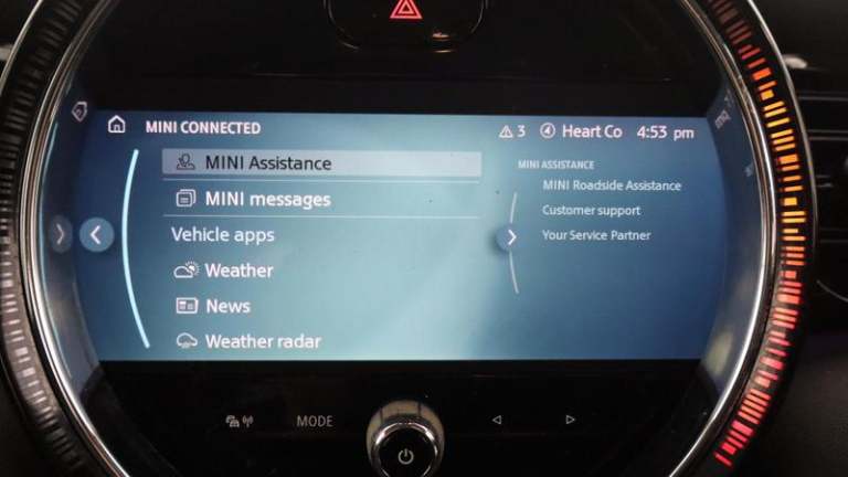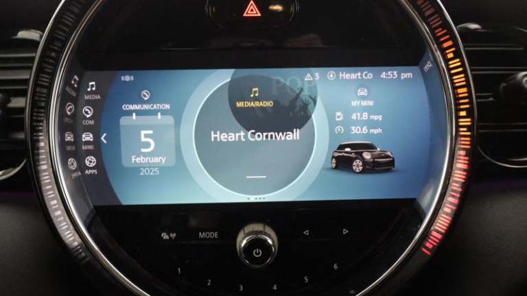 12V Socket in Centre Console, 6 Speakers - in Front Door Trims and Underneath Front Seats, 8.8in Touchscreen with LED Ring, Apple Carplay, Bluetooth for Compatible Mobile Phone - with Audio Streaming, FM Tuner and DAB Digital Radio, MINI E-Call, MINI TeleServices, Cruise Control with Brake Function, Gear-Change Indicator Display, On-Board Computer, Performance Control, Tyre Pressure Monitoring System, 15in Alloy Wheels - Heli Spoke, Electric Windows, Exhaust Tailpipe - Left with Chrome Finisher, Flexible Car Sharing Preparation, Fuel Filler Cap in Body Colour, Heated Rear Window, Heated Windscreen Washer Jets, Model Logo Cooper on Right of Tailgate, Radiator Grille - Chrome Border with Black High-Gloss Slats, Rear Fog Light, Roof and Mirror Caps - Body-Colour, Side Scuttle Panels with Integrated Indicators, Sun-Heat Protection Glass, Tyre Repair Kit, White Indicator Lenses, Darkened Rear Glass, Heated Front Windscreen, Roof and Mirror Caps - White, Automatic Headlight Activation Switch, LED Headlights with Closed Ring as Daytime Driving Lights, Rear LED Lights with Union Jack Design, 4 Lashing Eyes in Luggage Compartment, Air Conditioning - Manual, Carbon Black Colour Line - Knee Roll and Door Armrests, Chrome Highlights, Cup Holders, Door Sill Strips - Metal with MINI, Door Storage Compartments, Floor Mats - Velour, Foldable Rear Seats 60-40, Glove Compartment, Headliner - Satellite Grey, Instrument Cluster, Interior Trim - Piano Black, LED Reading Lights - Vanity Mirror Lights