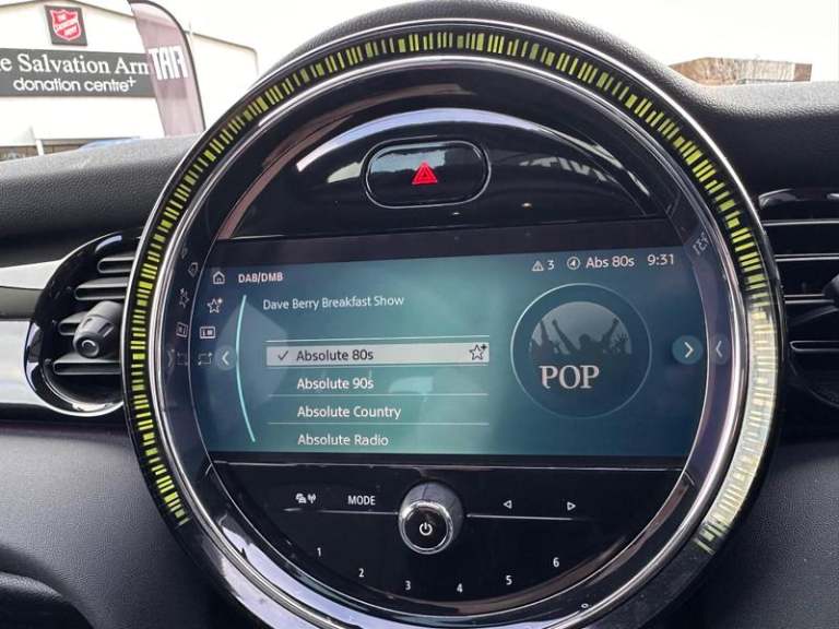 Navigation Pack, 12V Socket in Centre Console, 6 Speakers - in Front Door Trims and Underneath Front Seats, 8.8in Touchscreen with LED Ring, Bluetooth for Compatible Mobile Phone - with Audio Streaming, FM Tuner and DAB Digital Radio, MINI E-Call, MINI TeleServices, MINI Driving Modes, Gear-Change Indicator Display, On-Board Computer, Performance Control, Tyre Pressure Monitoring System, 17in Alloy Wheels - Scissor Spoke, Panoramic Glass Sunroof, Darkened Rear Glass, Heated Front Windscreen, Roof and Mirror Caps - Black, 15in Alloy Wheels - Heli Spoke, Electric Windows, Exhaust Tailpipe - Left with Chrome Finisher, Fuel Filler Cap in Body Colour, Heated Rear Window, Heated Windscreen Washer Jets, Model Logo Cooper on Right of Tailgate, Radiator Grille - Chrome Border with Black High-Gloss Slats, Rear Fog Light, Roof and Mirror Caps - Body-Colour, Side Scuttle Panels with Integrated Indicators, Sun-Heat Protection Glass, White Direction Indicators Lights, Automatic Headlight Activation Switch, LED Headlights with Closed Ring as Daytime Driving Lights, Rear LED Lights with Union Jack Design, Comfort Plus Pack, Firework Cloth - Carbon Black, 4 Lashing Eyes in Luggage Compartment, Air Conditioning - Manual, Carbon Black Colour Line - Knee Roll and Door Armrests, Chrome Highlights, Cup Holders, Door Sill Strips - Metal with MINI, Door Storage Compartments, Floor Mats - Velour, Foldable Rear Seats 60-40, Glove Compartment, Headliner - Satellite Grey, Instrument Cluster, Interior Lighting,