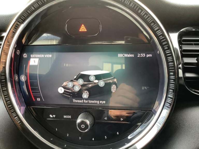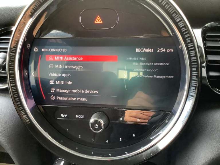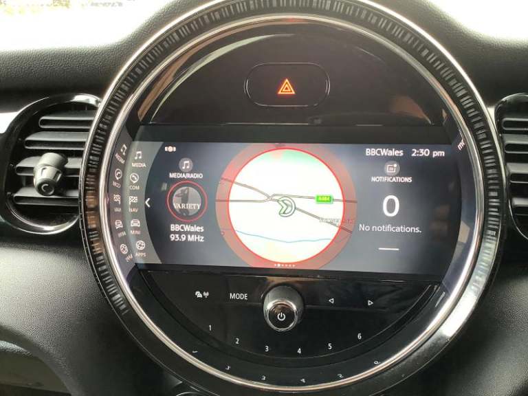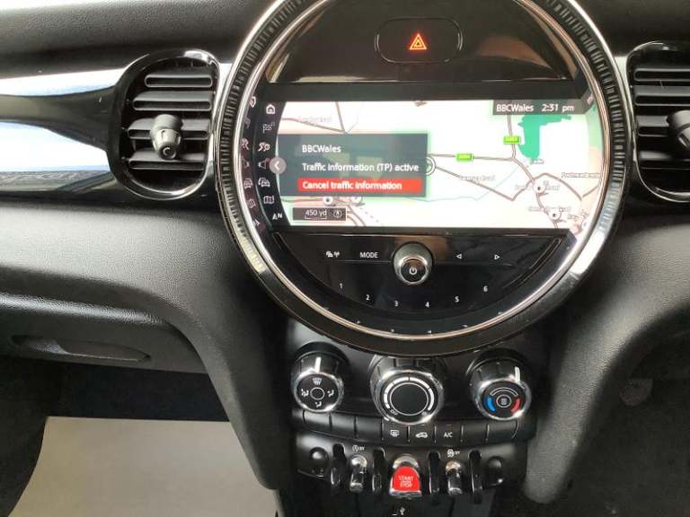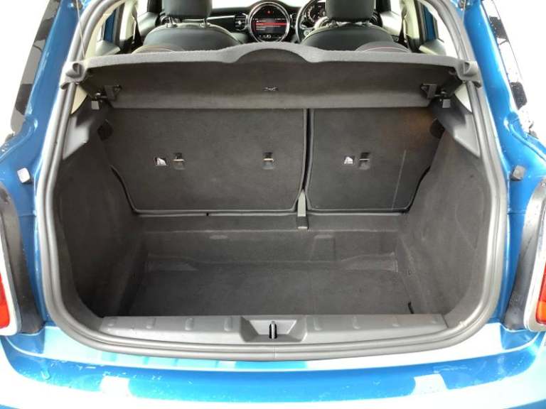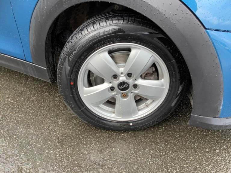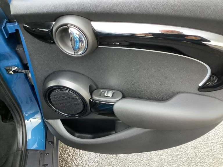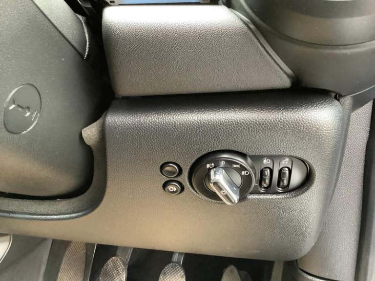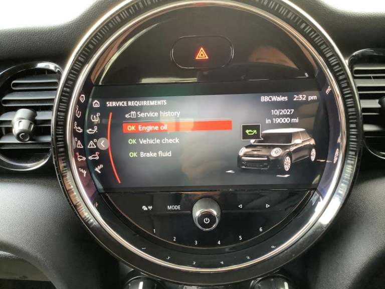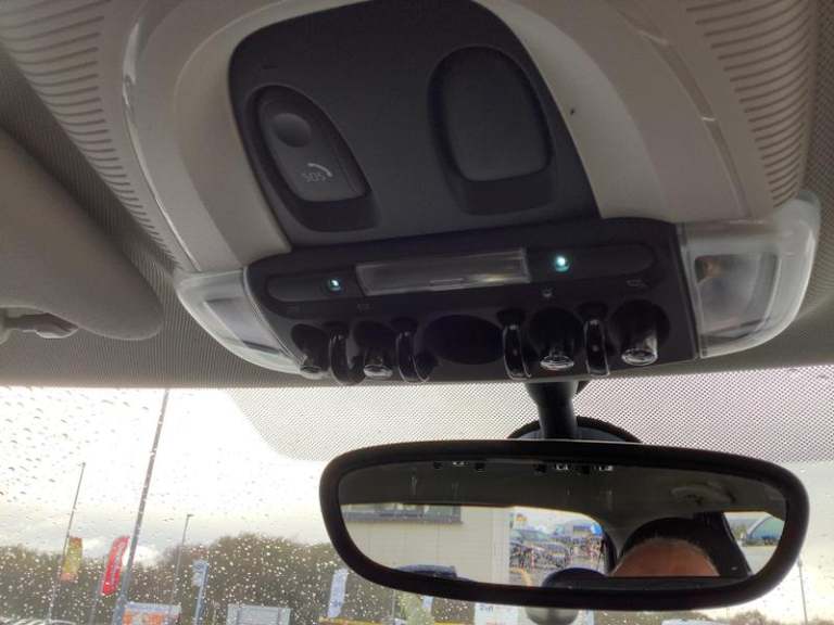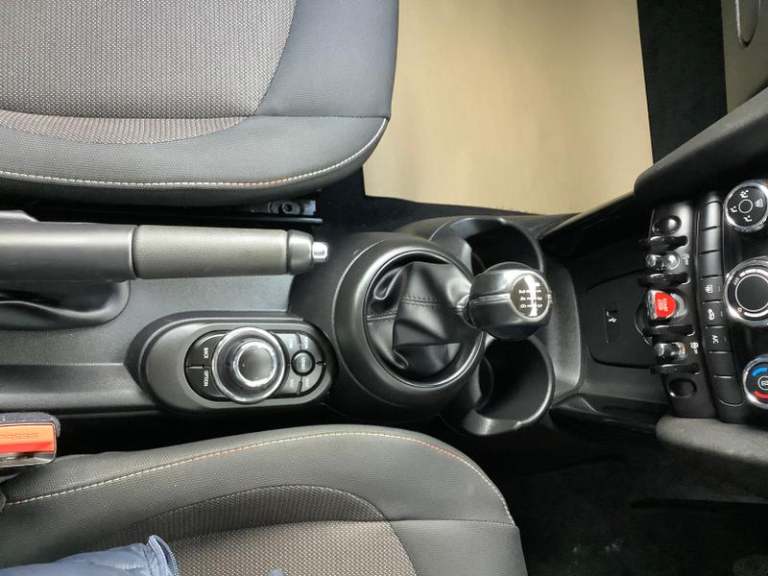 Cupholders, Electric front+rear windows, Manual air conditioning, Tool kit, On board computer, Heated rear window, Service interval indicator, White indicator lenses, Front and rear head restraints, Storage compartments in doors, Heated windscreen washer jets, DSC - Dynamic Stability Control, Tyre pressure monitoring system, Glove compartment, Hill start assist, Child locks on rear doors, Front and rear velour floor mats, Tyre repair kit, 60/40 split folding rear seat, Instrument cluster, Cruise control with brake assist, Piano black interior trim, Dynamic brake lights, Ambient lighting, Performance Control, Multifunction steering wheel, Sunvisors with vanity mirrors, 12V Accessory socket in centre console, MINI TeleServices, 3 seat bench in 2nd row, Rear fog lights, Anti-lock braking system (ABS), Rear window wiper, Sun/heat protection glass, Front and rear disc brakes, Fully variable valve control, Mini E-call, Automatic start/stop function with brake energy recuperation, High precision injection, Double Vanos system, FM tuner and DAB digital radio, Side scuttle panel with integrated indicator, Rain sensor window wipers, Chrome border high gloss black slats radiator grille, Model logo Cooper on right of tailgate, Automatic headlight activation switch, Rear LED lights with union jack design, Metal door sill strips with MINI imprint, Body colour fuel filler cap, Single tone fanfare horn, Front and rear isofix with front passenger airbag deactivation, Alarm system with tilt sensor,