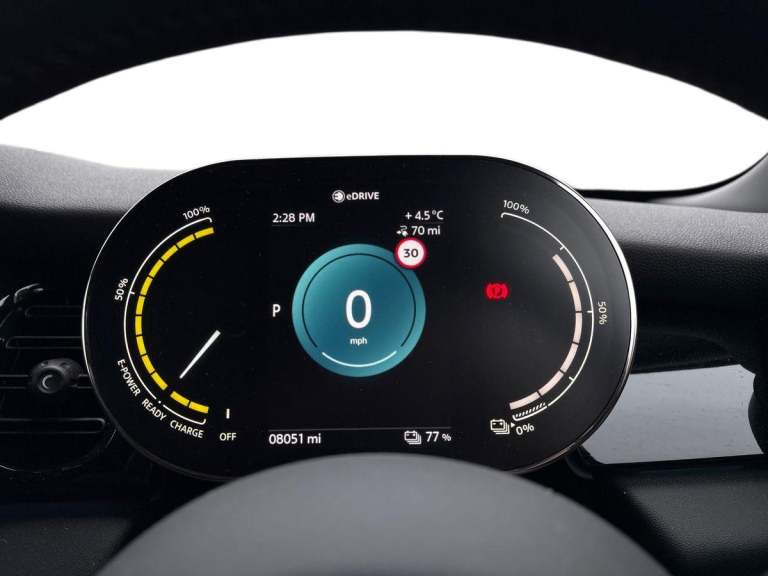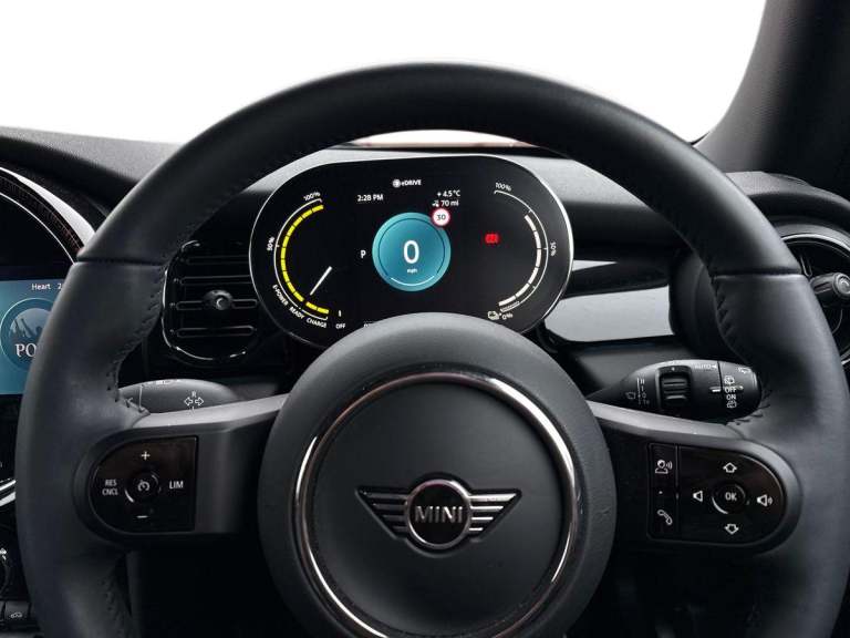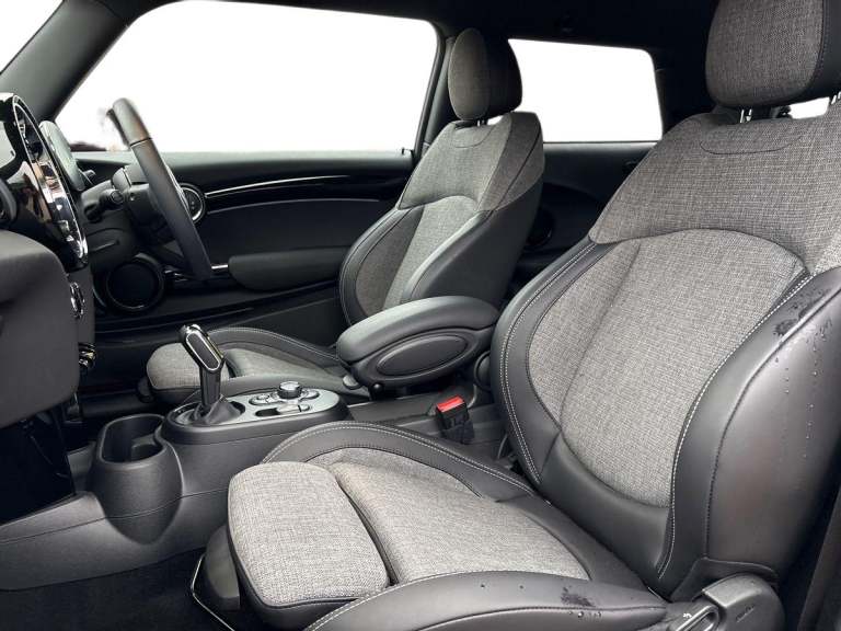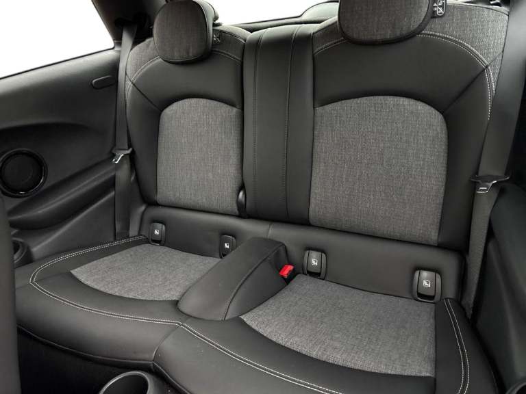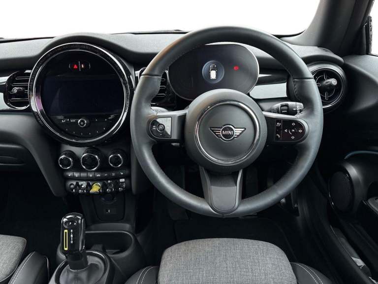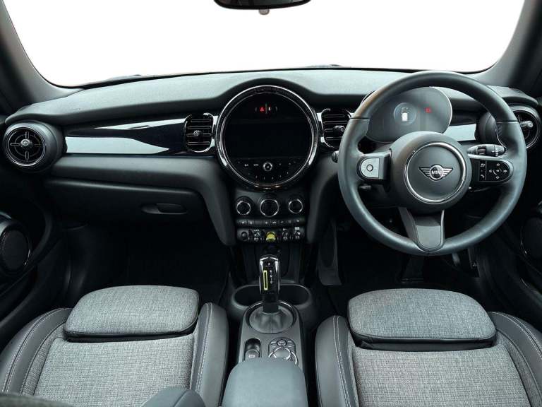 ..Brake energy recuperation toggle switch with two settings, Compatible mobile phone bluetooth with audio streaming, Cruise control, Digital instrument cluster, Electro-mechanical speed dependant steering assistance, Flexible car sharing preparation, MINI Driving Modes - centre toggle switch to control driving setting (sport, mid and green), On board computer, Rear park distance control, Rear view camera, Service interval indicator, Automatic transmission, Electric front motor installed drives front wheels, Performance Control, 4 speakers in front door trims and underneath front seats, FM tuner and DAB digital radio, Auto dimming and folding door mirrors, Auto headlights, Automatic headlight activation switch, Bonnet scoop, Charging flap embossed with e logo in body colour on drivers side rear panel includes LED light indicating charging status, Dynamic brake lights, Electric front+rear windows, Heated rear window, Heated windscreen washer jets, LED headlight with closed ring and daytime driving lights, Metal door sill strips with Cooper S in yellow, MINI logo projection, Model logo Cooper S in yellow on right of tailgate, Radiator grille including E badge, Rain sensor window wipers, Rear fog lights, Rear LED lights with union jack design, Rear window wiper, Side scuttle panel with integrated indicator with E badge, Third brake light, White indicator lenses, 12V Accessory socket in centre console, 2 seat bench in second row, 2 zone automatic air conditioning, 3 spoke sports multifunctional leather steering wheel with integrated controls for cruise control, brake function + audio/communication, 3 stage heated front seats, 4 lashing eyes in luggage compartment, 60/40 split folding rear seat, AC and DC charging, Ambient lighting, Anthracite headlining, Black velour floor mats, Chrome interior highlights, Cloth/leatherette upholstery with sport seats, Cupholders, Front and rear head restraints, Front and rear isofix with front passenger airbag deactivation, Front centre armrest, Glove compartment, Heat pump, Height adjustable passenger seat, Height and length steering column adjustment, Interior lighting in front of headliner, LED waterfall lighting in orange roof control panel, Luggage compartment lighting, Manual adjustment for thigh rests, Mechanical seat adjustment, driver seat height adjust, forward/back and front seats backrest, Single front passenger seat, Storage compartments in doors, Storage pocket on back of front seats, Sunvisors with vanity