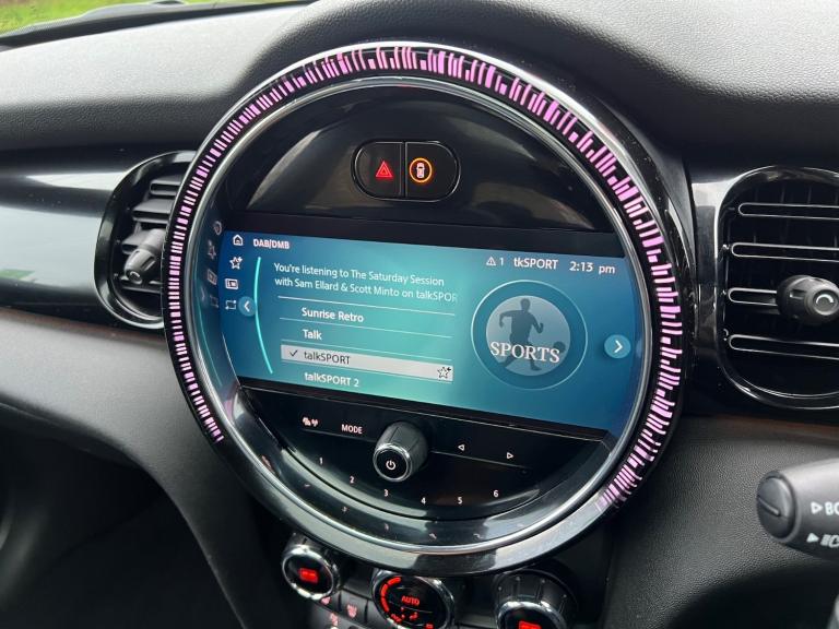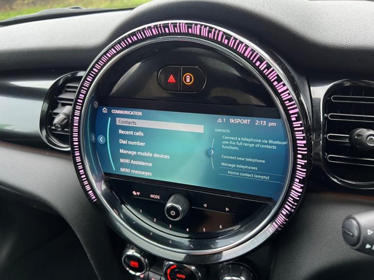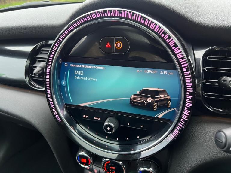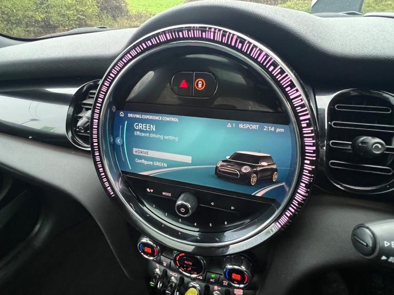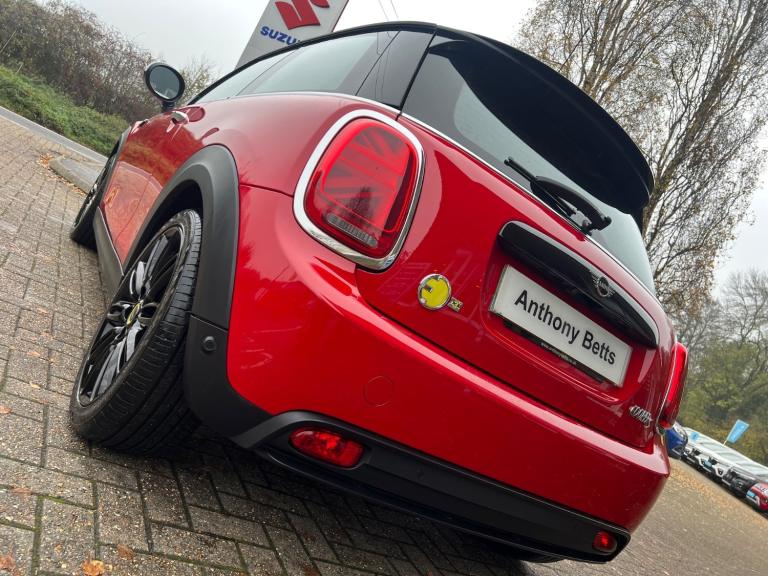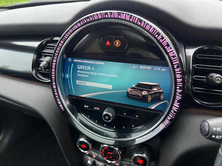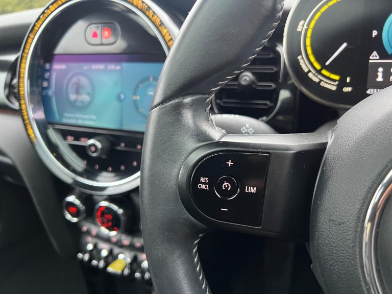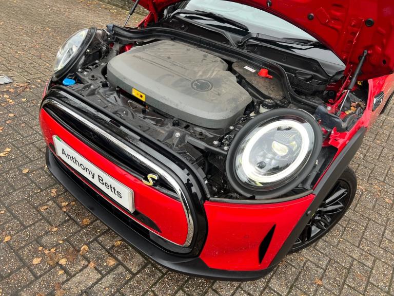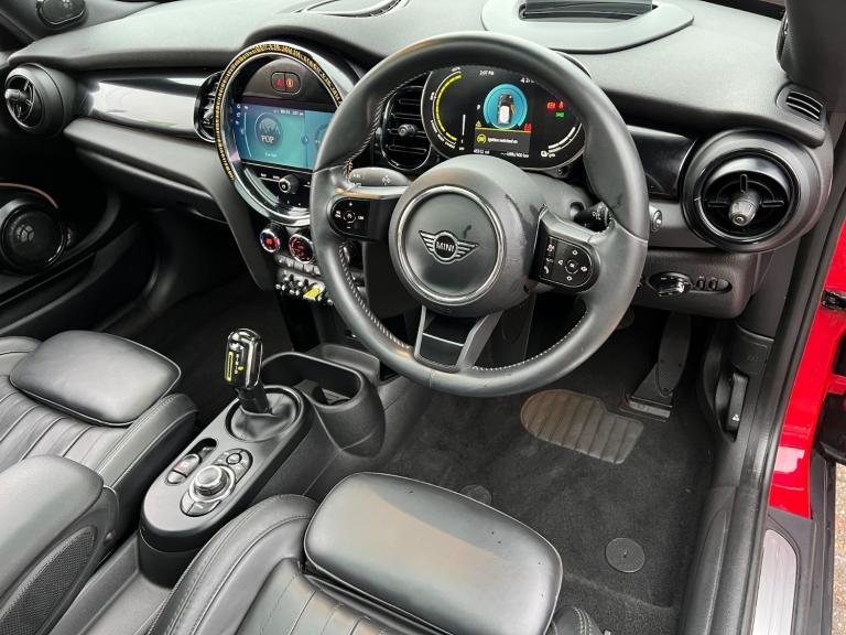 ..Brake energy recuperation toggle switch with two settings, Compatible mobile phone bluetooth with audio streaming, Cruise control, Digital instrument cluster, Electro-mechanical speed dependant steering assistance, Flexible car sharing preparation, Front park distance control, MINI Driving Modes - centre toggle switch to control driving setting (sport, mid and green), On board computer, Park assist system, Rear park distance control, Rear view camera, Service interval indicator, Automatic transmission, Electric front motor installed drives front wheels, Performance Control, 4 speakers in front door trims and underneath front seats, FM tuner and DAB digital radio, Harman Kardon sound system, Adaptive LED Headlights with matrix function, Auto dimming and folding door mirrors, Auto headlights, Automatic headlight activation switch, Bonnet scoop, Charging flap embossed with e logo in body colour on drivers side rear panel includes LED light indicating charging status, Dynamic brake lights, Electric front+rear windows, Electric panoramic glass sunroof, Heated rear window, Heated windscreen washer jets, LED daytime running lights, Metal door sill strips with Cooper S in yellow, MINI logo projection, Model logo Cooper S in yellow on right of tailgate, Radiator grille including E badge, Rain sensor window wipers, Rear fog lights, Rear LED lights with union jack design, Rear window wiper, Side scuttle panel with integrated indicator with E badge, Third brake light, White indicator lenses, 12V Accessory socket in centre console, 2 seat bench in second row, 2 zone automatic air conditioning, 3 spoke sports multifunctional leather steering wheel with integrated controls for cruise control, brake function + audio/communication, 3 stage heated front seats, 4 lashing eyes in luggage compartment, 60/40 split folding rear seat, AC and DC charging, Ambient lighting, Anthracite headlining, Black velour floor mats, Chrome interior highlights, Cupholders, Front and rear head restraints, Front and rear isofix with front passenger airbag deactivation, Front centre armrest, Glove compartment, Heat pump, Height adjustable passenger seat, Height and length steering column adjustment, Interior lighting in front of headliner, LED waterfall lighting in orange roof control panel, Luggage compartment lighting, Manual adjustment for thigh rests, Mechanical seat adjustment, driver seat height adjust, forward/back and front seats backrest, Single front passenger seat, Storage