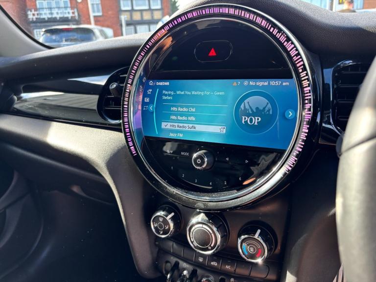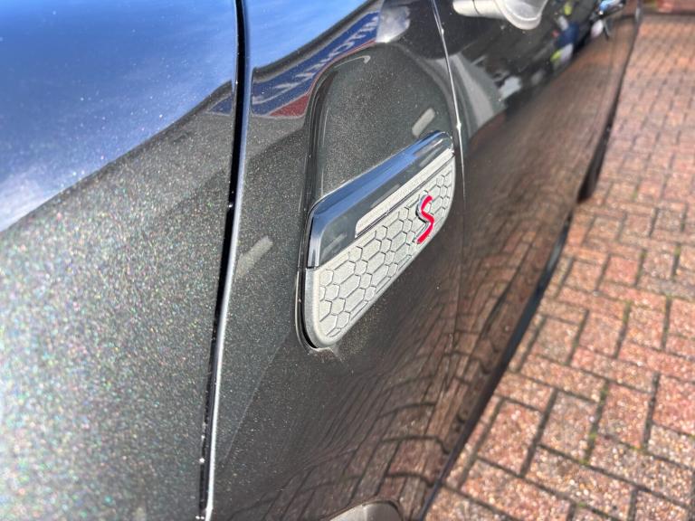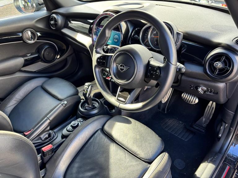 ..Apple CarPlay, Automatic start/stop function with brake energy recuperation, Compatible mobile phone bluetooth with audio streaming, Cruise control with brake assist, Electro-mechanical speed dependant steering assistance, Flexible car sharing preparation, Instrument cluster, MINI Driving Modes - centre toggle switch to control driving setting (sport, mid and green), Mini E-call, MINI TeleServices, On board computer, Rear park distance control, Service interval indicator, Adaptive suspension, Double Vanos system, Fully variable valve control, Gear change indicator display, High precision injection, Performance Control, Steptronic sport transmission with double clutch and steering wheel paddles, 8.8'' touchscreen with LED ring, FM tuner and DAB digital radio, 3rd brake light, Automatic headlight activation switch, Bonnet scoop, Dynamic brake lights, Electric front+rear windows, Heated rear window, Heated windscreen washer jets, JCW Aerodynamic kit - Front and rear bumpers with sporty JCW styling and part-painted side sills with MINI John Cooper Works door sill finishers, John Cooper Works rear spoiler, LED headlight with closed ring and daytime driving lights, Metal door sill strips with Cooper S imprint, Model logo Cooper S on right of tailgate, Radiator grille chrome border with honeycomb structure including S Badge, Rain sensor window wipers, Rear fog lights, Rear LED lights with union jack design, Rear side wing doors, Rear window wiper, Side scuttle panel with integrated indicator, Sun/heat protection glass, Two central exhaust tailpipes with chrome finisher, White indicator lenses, 12V Accessory socket in centre console, 3 seat bench in 2nd row, 4 lashing eyes in luggage compartment, 60/40 split folding rear seat, Anthracite headliner including grab handles and clothes hooks, Carbon black colour line - Knee roll and door armrest, Chrome interior highlights, Cupholders, Front and rear isofix with front passenger airbag deactivation, Front and rear velour floor mats, Glove compartment, Height and length steering column adjustment, Interior lighting with 12 different colours across the dashboard, underneath door bezel with illuminated laser-engraved design on central display, JCW Sport seats with integrated headrests, adjustable thigh support and John Cooper Works logo, Leatherette gearshift lever and handbrake gaiters, LED reading lights, vanity mirror lights, front foot well light and spotlight on front seats, Manual air conditioning, Mechanical
