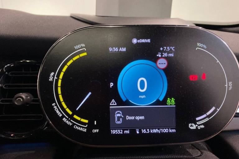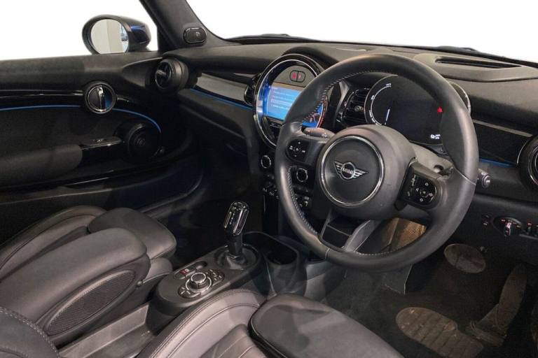 This 2023 MINI Electric Hatch Cooper SE Level 3 has a clear vehicle history check and an MOT valid until February 2027, offering peace of mind for its next owner. This single owner vehicle boasts a 33 kWh battery with a maximum range of 142 miles when new, and can be fully charged at home on a 7kW charger in approximately 5 hours and 15 minutes. For faster top ups, an 80% charge can be achieved in just 36 minutes at a public charging station. Experience the thrill of instant electric power with the MINI Electric Hatch Cooper SE Level 3, accelerating from 0 to 60mph in a swift 7.3 seconds, a performance that sets it apart. This Level 3 trim comes equipped with striking LED Headlights featuring a distinctive closed ring for daytime driving lights, ensuring you are seen. Inside, enjoy the premium sound of Harman Kardon Speakers and the convenience of the Navigation Plus Pack, which includes Apple CarPlay and a Head Up Display. Comfort is enhanced with heated seats, and parking is made easier with front Park Distance Control. Lifetime warranty available on this car, plus a £1,000 finance contribution when you part exchange. Voted UK Car Supermarket of the Year two years running, we offer 0% finance, part exchange, and lifetime warranties across our entire range. Every car is thoroughly inspected before sale and comes with a full history check, so you can buy with complete peace of mind. Buy with confidence on our best finance rates. Proud winners of the CarGurus Top-Rated Dealer 2022 and the MotoNovo Extra Mile Award. .12V Socket in Centre Console, 17in Alloy Wheels - Roulette Spoke, 3 Point Seatbelts on all Four Seats, 4 Lashing Eyes in Luggage Compartment, 8.8in Touchscreen with LED Ring, AC-DC Charging, Acoustic Pedestrian for Protection, Air Conditioning - Automatic - with Two Zone Control, Airbags - x6 - Front - Side - Head and Seatbelt Tensioners, Alarm System, Ambient Lighting, Anti-Lock Braking System - ABS, Apple Carplay, Automatic Headlight Activation Switch, Bluetooth for Compatible Mobile Phone with Audio Streaming, Bonnet Scoop, Brake Energy Recuperation Toggle Switch, Carbon Black Colour Line - Knee Roll and Door Armrests, Charging Flap on Drivers Side Rear Panel - Embossed with E-Logo - Includes LED Light Indicating Charging Status, Chrome Highlights, Comfort Access System, Cruise Control, Cup Holders, Digital Instrument Cluster, Door Sill Strips - Metal with Cooper S, Door Storage Compartments, Driver and Front Passenger Floor Mats - Velour, Driving Assistant Pack, Dynamic Brake Lights, Dynamic Stability Control - DSC, eDrive Services, Electric Windows - Front, Electro-Mechanical Steering with Speed Dependant Steering Assistance, Electronic Parking Brake, Electronic Vehicle Immobiliser, Enigmatic Black, Flexible Car Sharing Preparation, FM Tuner and DAB Digital Radio, Foldable Rear Seats 60-40, Folding and Auto Dimming Mirrors, Front and Rear ISOFIX - including Front Passenger Airbag Deactivation, Front Armrest, Glove Compartment, Harman Kardon Speakers, Headliner - Anthracite, Heat Pump, Heated Rear Window, Heated Windscreen Washer Jets, Interior Light Pack, Interior Lighting in Front of Headliner, Interior Trim - Piano Black, LED Headlights with Closed Ring as Daytime Driving Lights, Legal Emergency Call, Luggage Compartment - Light, Mechanical Seat Adjustment for Drivers Seat and Passengers Seat, MINI Driving Modes, MINI Logo Projection, MINI Yours Lounge Leather - Carbon Black, Model Logo Cooper S on Right of Tailgate, Multifunction Steering Wheel, Navigation Plus Pack, On-Board Computer, Panoramic Glass Sunroof, Parking Assistant, PDC - Park Distance Control - Front, PDC - Park Distance Control - Rear, Performance Control, Radiator Grille including E Badge, Rain Sensor Window Wipers, Rear Fog Light, Rear LED Lights with Union Jack Design, Rear View Camera, Rear Window Wiper, Roof and Mirror Caps - Body-Colour, Seats - Heated, Side Scuttle Panels with Integrated Indicators - with E Badge, Start-Stop Toggle including Keyless Go, Steering Column Adjustm