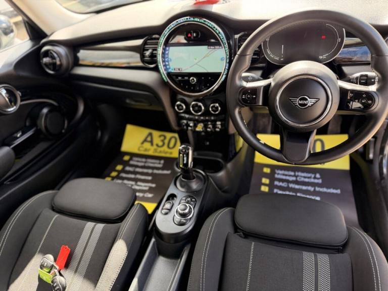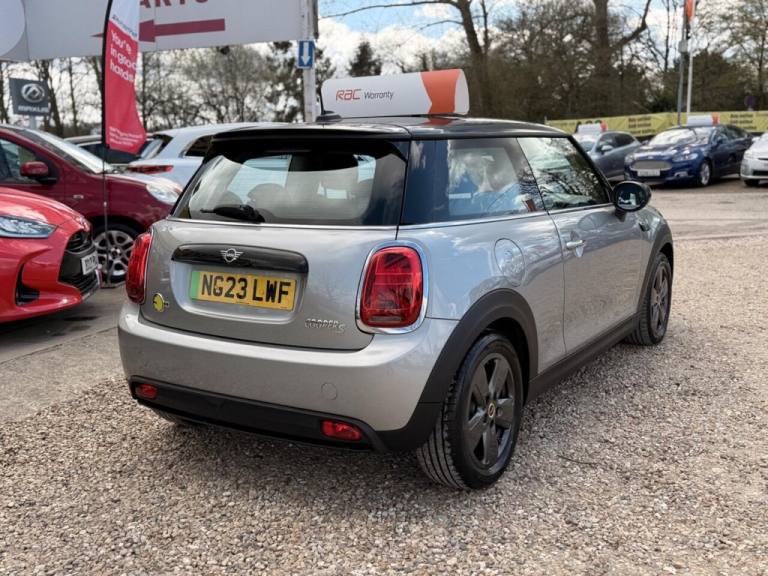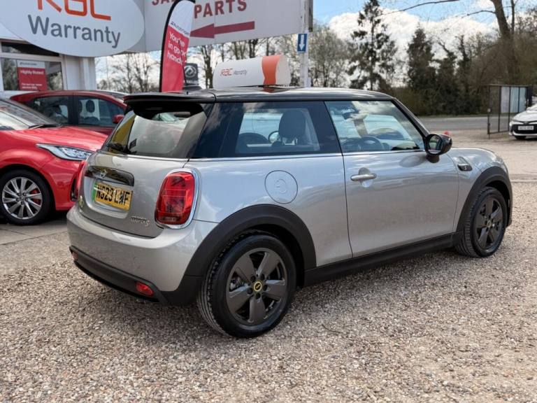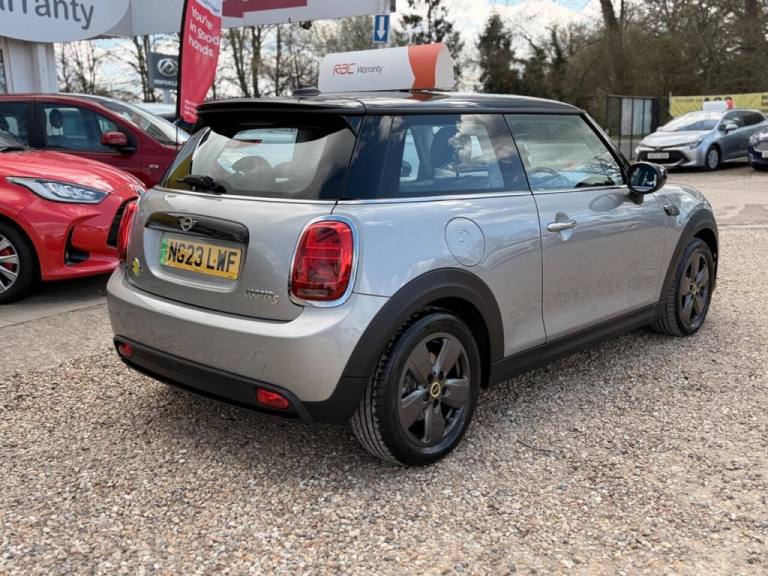 .. Reserve now so as not to miss out. Go online and see finance & p/x offers .. This 2023 MINI Electric Hatch Cooper SE Level 1 boasts an exceptionally low mileage of just 8872 miles, having had only one owner and a full dealership service history, with its last service completed at 8579 miles. This electric vehicle features a 33 kWh battery offering a maximum range of 145 miles when new. Charging is convenient, with a full charge at home on a 7kW charger taking approximately 5 hours and 15 minutes, and a rapid charge to 80% from empty achievable in just 36 minutes at a public charging station. Notable features include automatic dual zone climate control, LED headlights with distinctive daytime running lights, Bluetooth connectivity for compatible mobile phones with audio streaming, and a navigation pack that includes Apple CarPlay. The automatic headlight activation ensures your lights are always on when needed. Experience the exhilarating performance of this MINI Electric Hatch, with its impressive 0-62mph acceleration in just 7.3 seconds, a highlight that sets it apart from many other electric vehicles. This swift acceleration, combined with the efficient electric powertrain and the comprehensive features provided, makes this Cooper SE Level 1 a compelling choice for those seeking a dynamic and well equipped electric car. Its low mileage and single owner provenance further underscore its excellent condition and desirability..12V Socket in Centre Console, 16in Alloy Wheels - Revolite, 3 Point Seatbelts on all Four Seats, 4 Lashing Eyes in Luggage Compartment, 8.8in Touchscreen with LED Ring, AC-DC Charging, Acoustic Pedestrian for Protection, Air Conditioning - Automatic - with Two Zone Control, Airbags - x6 - Front - Side - Head and Seatbelt Tensioners, Alarm System, Ambient Lighting, Anti-Lock Braking System - ABS, Automatic Headlight Activation Switch, Bluetooth for Compatible Mobile Phone with Audio Streaming, Bonnet Scoop, Carbon Black Colour Line - Knee Roll and Door Armrests, Charging Flap on Drivers Side Rear Panel - Embossed with E-Logo - Includes LED Light Indicating Charging Status, Chrome Highlights, Cruise Control, Cup Holders, Digital Instrument Cluster, Door Sill Strips - Metal with Cooper S, Door Storage Compartments, Dynamic Brake Lights, Dynamic Stability Control - DSC, Electric Windows - Front, Electro-Mechanical Steering with Speed Dependant Steering Assistance, Electronic Parking Brake, Electronic Vehicle Immobiliser, FM Tuner and DAB Digital Radio, Flexible Car Sharing Preparation, Floor Mats, Foldable Rear Seats 60-40, Front and Rear ISOFIX - including Front Passenger Airbag Deactivation, Glove Compartment, Headliner - Satellite Grey, Heated Rear Window, Heated Windscreen Washer Jets, Interior Light Pack, Interior Lighting in Front of Headliner, Interior Surface - Black Chequered, Interior Trim - Piano Black, LED Headlights with Closed Ring as Daytime Driving Lights, Legal Emergency Call, Luggage Compartment - Light, MINI Driving Modes, Mechanical Seat Adjustment for Drivers Seat and Passengers Seat, Model Logo Cooper S on Right of Tailgate, Multifunction Steering Wheel, Navigation Pack, On-Board Computer, Performance Control, Radiator Grille including E Badge, Rain Sensor Window Wipers, Rear Fog Light, Rear LED Lights with Union Jack Design, Rear Window Wiper, Roof and Mirror Caps - Body-Colour, Side Scuttle Panels with Integrated Indicators - with E Badge, Speakers - 4, Sport Leather Steering Wheel, Sport Seats including Manual Adjustment for Thigh Rests, Start-Stop Toggle including Keyless Go, Steering Column Adjustment - Height and Length, Storage - Pockets on Back of Front Seats, Sun Visor with Vanity Mirrors, TPWS - Tyre Pressure Warning System, Teleservices, Tool Kit, Two Charging Cables, Two-Tone Horn, Warning Triangle and First Aid Kit, White Indicator Lenses, Roof and Mirror Caps - Black, Double Stripe Cloth - Carbon Black
