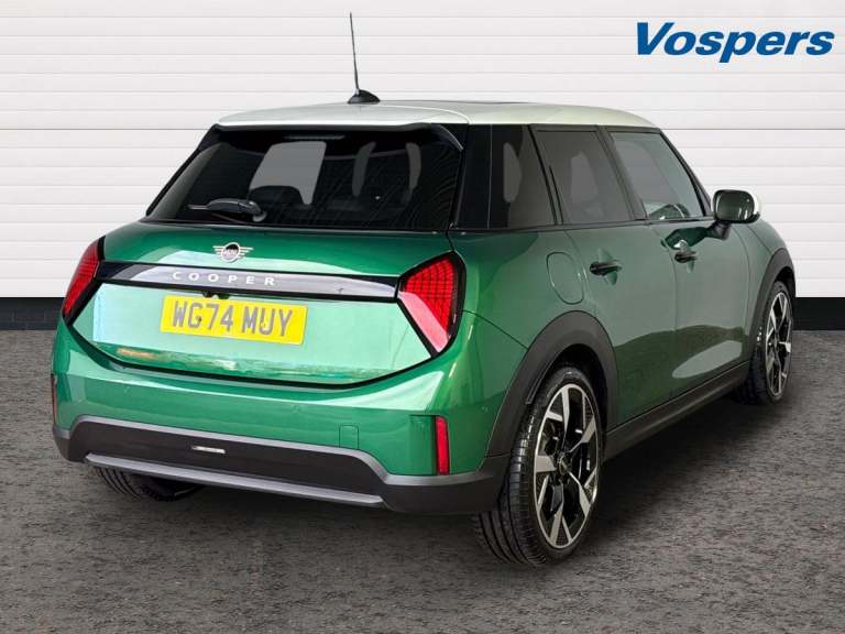 .Additional Spec 18in Alloy Wheels - Slide Spoke 2-Tone (Rare) Level 2 Pack: Panoramic glass roof Harman/Kardon sound system privacy glass heated seats Head-Up Display keyless entry adaptive LED headlights. Ownership: 1 Owner This 2024 MINI Cooper C Exclusive is a superb example of refined motoring. Powered by a responsive 1.5L petrol engine, this Euro 6 compliant vehicle offers an engaging driving experience with a 0-62mph acceleration time of just 8.0 seconds. The Exclusive trim level is further enhanced by striking 18 inch Alloy Wheels in a stylish two tone slide spoke design. Inside, you'll discover the benefits of the Level 2 Pack, which includes a premium branded sound system for your listening pleasure, a convenient Head Up Display to keep your eyes on the road, and advanced LED headlights for superior visibility. Comfort is paramount with heated seats and a heated steering wheel, perfect for colder journeys, while the fixed panoramic sunroof floods the cabin with natural light. Keyless entry adds to the convenience, and the integrated wireless phone charging keeps your devices powered up effortlessly..Central toggle bar, Circular OLED Screen, Compatible mobile phone bluetooth with audio streaming, Cruise control, Digital instrument cluster, Electro-mechanical speed dependant steering assistance, Emergency call service, MINI Experience Modes, Mini navigation system, On board computer, Service interval indicator, 7 speed steptronic transmission with double clutch, DAB Digital radio, Personal eSim, Auto headlights, Electric adjustable heated door mirrors, Electric front+rear windows, Heated rear window, Heated windscreen washer jets, LED daytime running lights, LED Headlights, LED indicator lights, LED rear lights, Logos in Vibrant Silver, Rain sensor window wipers, Rear fog lights, Rear side wing doors, Rear window wiper, Vibrant silver grille surround, 2 zone automatic air conditioning, 3 seat bench in 2nd row, 60/40 rear seat bench, Ambient lighting, Cupholders, Dark headliner, Floor mats, Front and rear head restraints, Front compact armrest, Heated steering wheel, Height adjustable passenger seat, Lidded storage box in grey knit, Luggage compartment lighting, Single front passenger seat, Sport Vescin Steering Wheel black with vibrant silver accents, Sunvisors with vanity mirrors, Vescin synthetic leather upholstery, Driving assistant pack - Cooper Hatchback, Park assistant pack - Cooper Hatchback, 3 point seatbelts on all five seats, 6