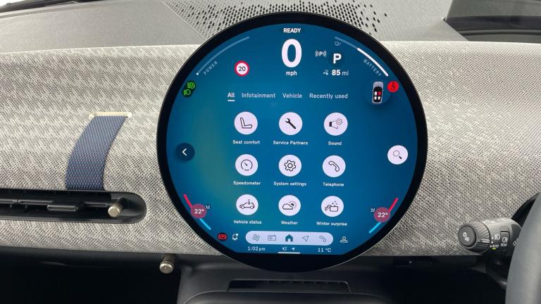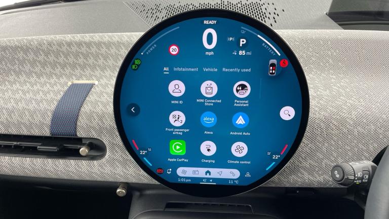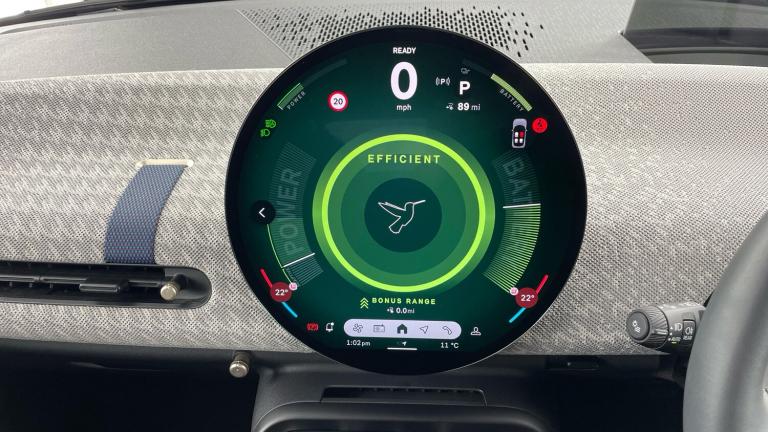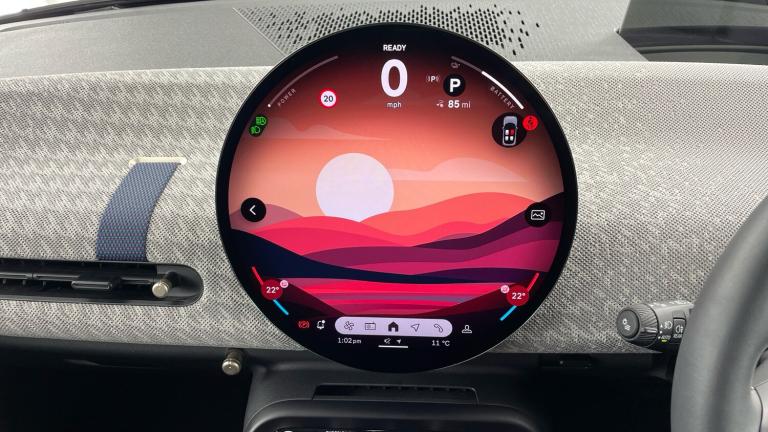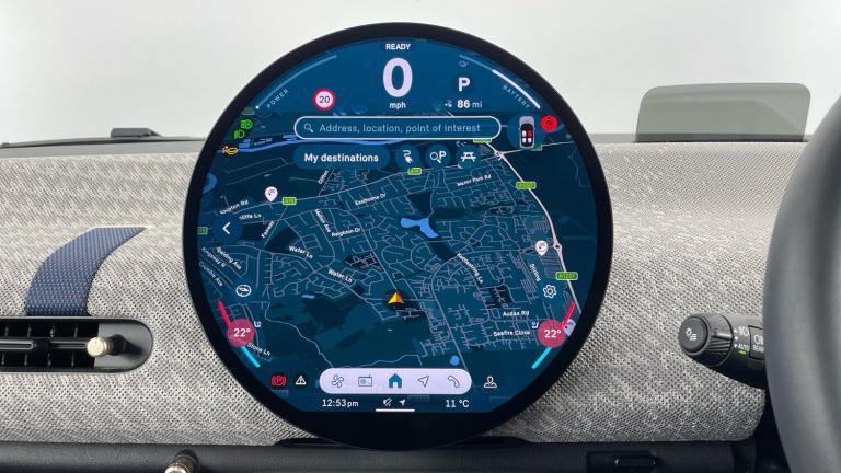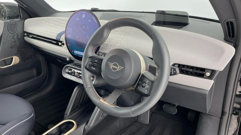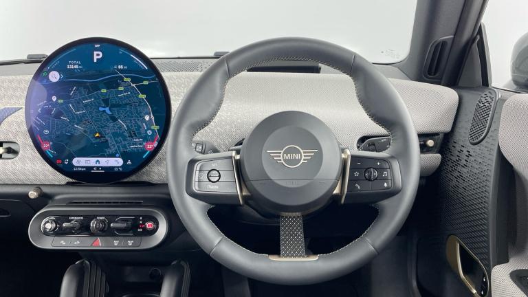 .Floor mats, DC Rapid charging, 11kW AC charging, Electric front+rear windows, Heated rear window, Heated windscreen washer jets, Rear window wiper, Rain sensor window wipers, DSC - Dynamic Stability Control, Electronic parking brake, Anti-lock Braking System (ABS), Front and rear disc brakes, Traction control, Compatible mobile phone bluetooth with audio streaming, Cruise control, Rear park distance control, Park assist system, Rear view camera, Driving assistant, Electro-mechanical speed dependant steering assistance, MINI Experience Modes, Driver camera system, Central toggle bar, On board computer, Service interval indicator, Digital instrument cluster, Emergency call service, Mini navigation system, Circular OLED Screen, Electric adjustable heated door mirrors, Blue decorative dash strap, Mode 3 cable, DAB Digital radio, Personal eSim, Body coloured wheel arches, Vibrant silver grille surround, Logos in Vibrant Silver, Tailgate