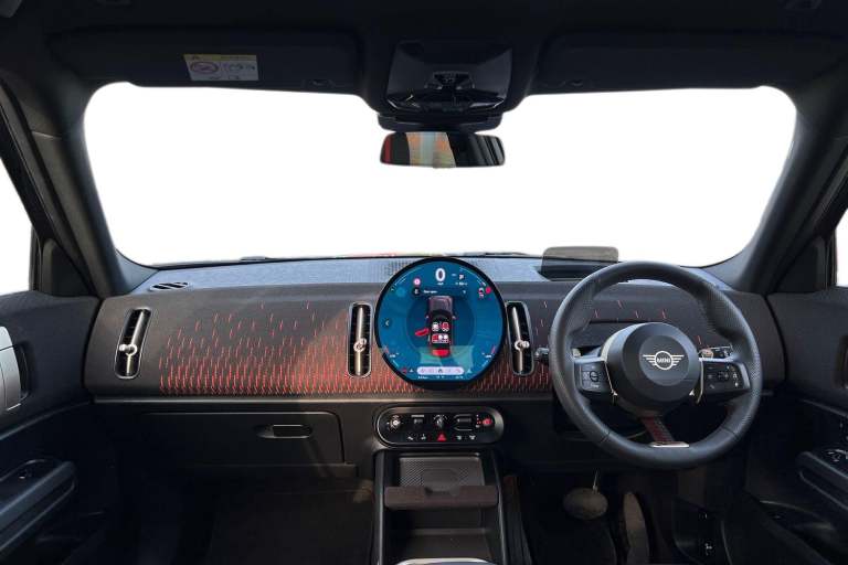 ..Level 1 Pack, Vescin-Cloth Combination - JCW Black, 19in Alloy Wheels - JCW Runaway Spoke - Jet Black, 6 Speakers System, 60-40 Rear Seat Bench, Air Conditioning - Automatic, Airbags - Driver, Airbags - Front Passenger, Alarm System, Anthracite Headlining, Anti-Lock Braking System - ABS, Automatic Operation of Tailgate, Bluetooth Connection, Brake Calipers in Black with JCW Badge, Central Locking - Remote, Child Locks - Manual, Circular OLED Screen, Cruise Control, DAB Digital Radio, DTC - Dynamic Traction Control, Dashboard Knit - JCW - Black - Red, Driving Assistant, ESP - Electronic Stability Programme, Electric Windows - Front and Rear, Electronic Handbrake, Electronic Power Steering, Electronic Vehicle Immobiliser, Floor Mats, Front Armrest, Front Passenger ISOFIX, Front and Rear Apron, Gearshift Paddles, Heated Steering Wheel, High Gloss Hexagonal Patterned Grill Surround, Hill Hold and Start Assistance, Interior Lights Pack, JCW Sport Brake, JCW Sports Seats, LED Headlights, Lidded Storage Box in Black-Red Knit, Locking Wheel Bolts, MINI E-Call, MINI Experience Modes, MINI Mobility System, MINI Navigation System, Parking Assistant, Parking Distance Control, Perforated Vescin Steering Wheel, Rain Sensor and Automatic Headlight Activation, Rear Spoiler with Airblades, Rear View Camera, Roof Rails, Roof in Body Colour, Start-Stop Button, Steering Column Height and Length Adjustment, Teleservices, Tyre Pressure Monitoring System, Warning Triangle
