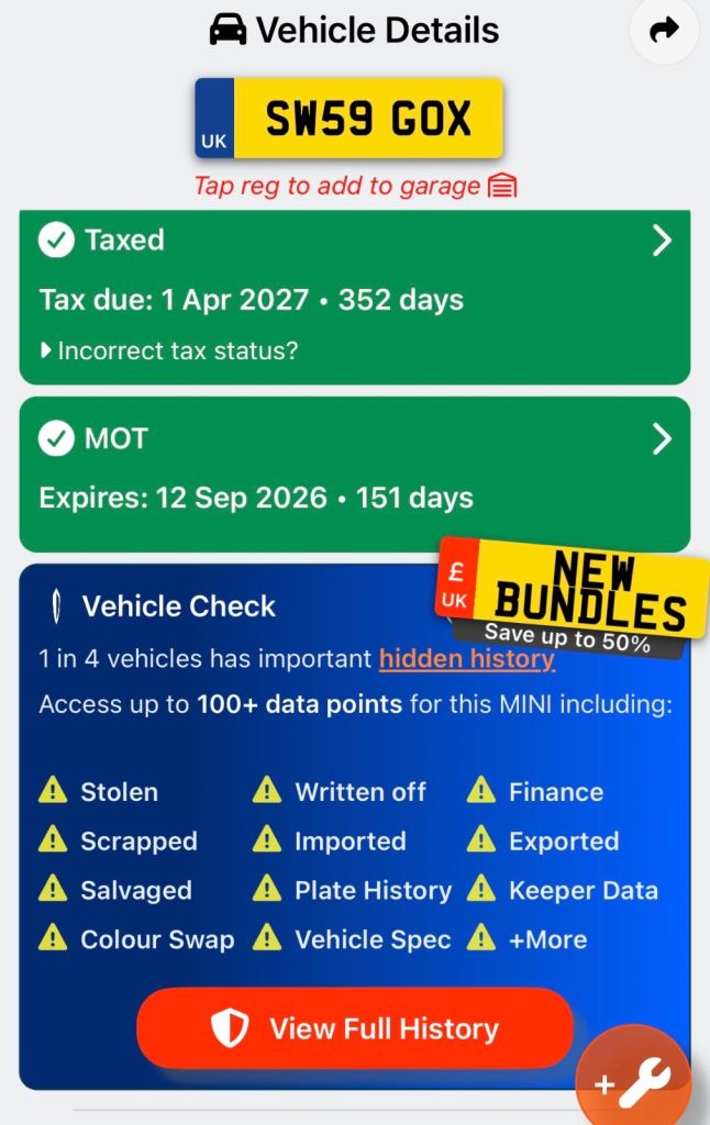 Buy the full report for guaranteed data accuracy, outstanding finance, valuation, milage check & VIN match for £9.99 (normally £19.99)