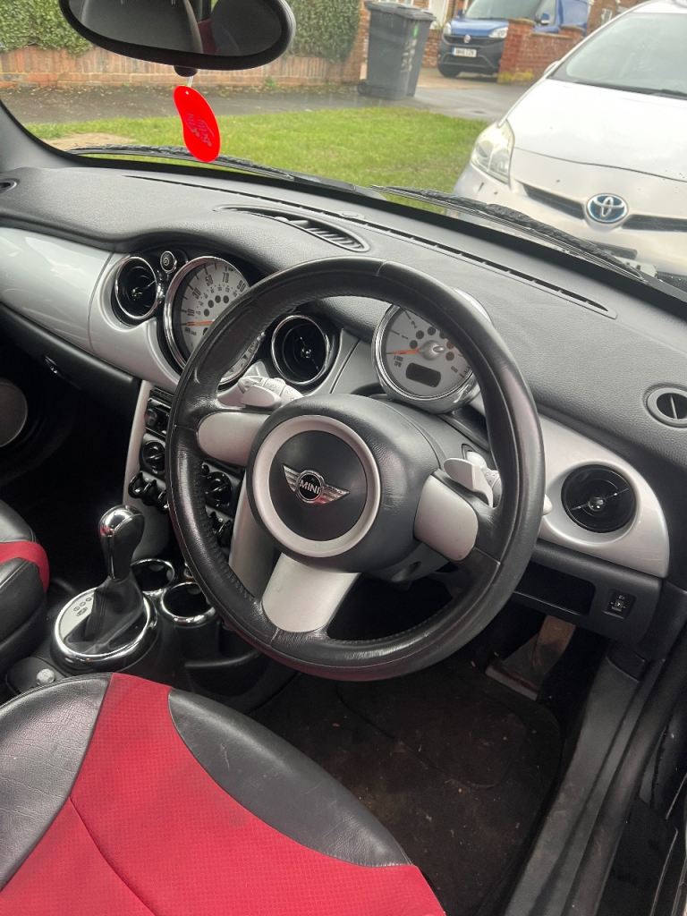 Black mini cooper, 1.6 Litre Automatic manual car, ULEZ compliant, electric windows, electric mirrors, central locking, fog lights, 17’ alloy wheels, remote central locking, climate control, Aftermarket stereo system with bluetooth connection, Mileage 105,000, MOT 19/08/2026. Good running condition .half service history (6 stamps on the book)great little automatic car .good for new driver
