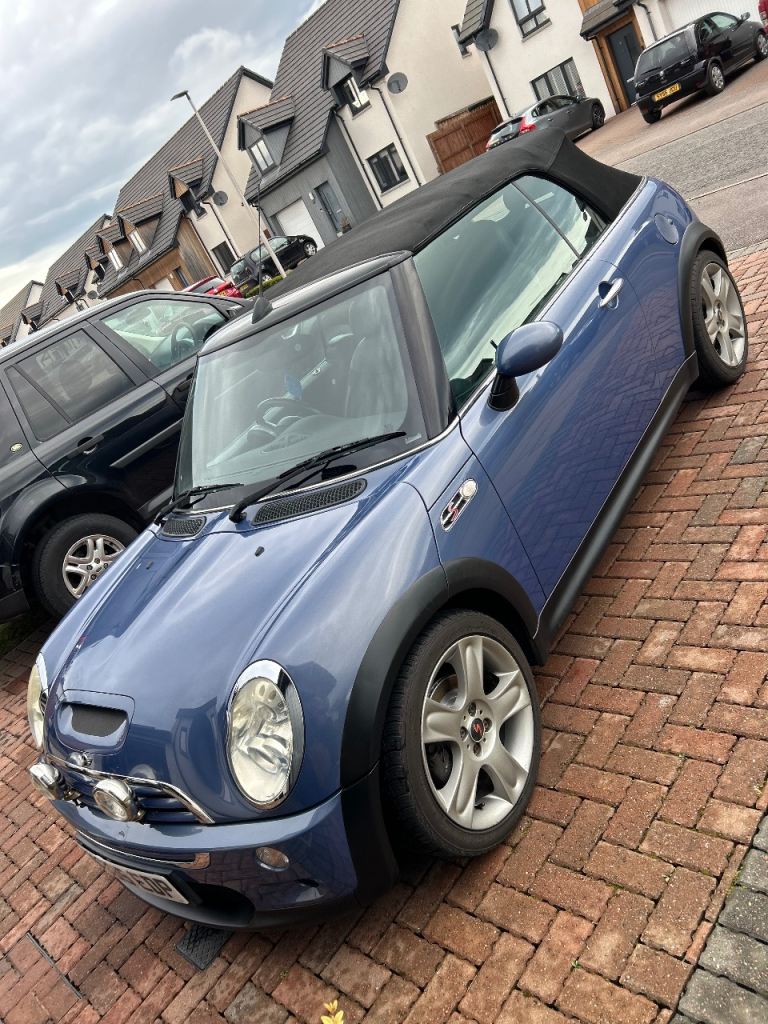 2005 Mini Cooper S Convertible in blue, 75,900 miles, 1.6 supercharged engine. Quick, responsive and great fun to drive. Great clean condition for its age. Has always been a reliable car.