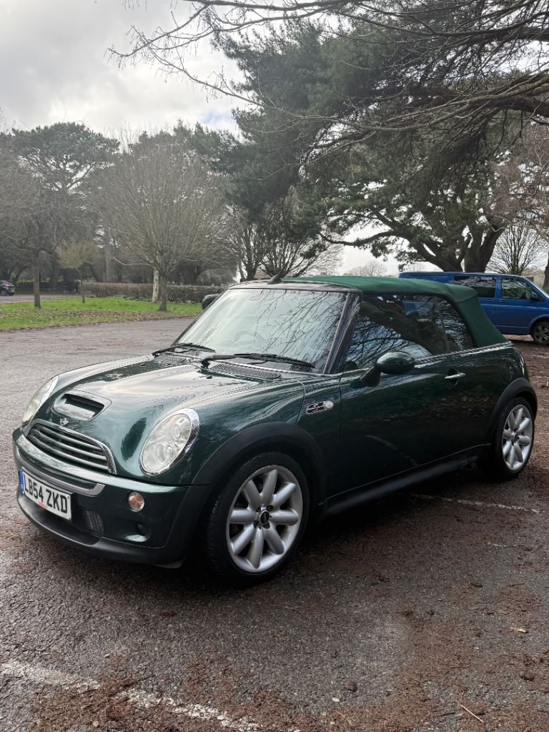 Here we have a very nice and huge specification 2005 Mini Cooper s Convertible finished in British racing green with a rare matching green soft top!