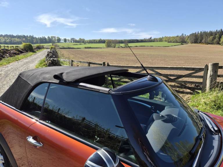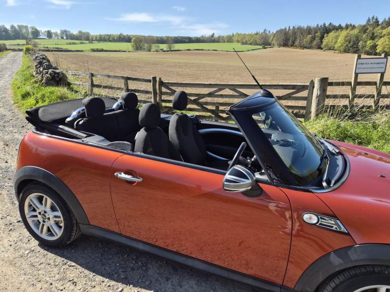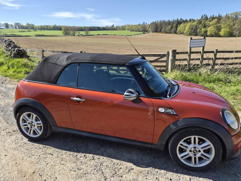 Mini Cooper Convertible. Mot until April 2027. 4 new tyres and no advisories. Priced to sell as I have a new car. Extras include a wind deflector and cover. Regularly serviced by our local garage and some service history. New spark plugs fitted and drives great. £2500 or very near offer.
