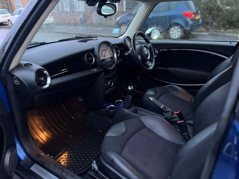 Lovely MINI Hatch in a great blue colour with white roof, mirrors, and bonnet stripes – a real head-turner. With just 56k miles, this is low mileage for its age and has clearly been well looked after. 13 year full service history.