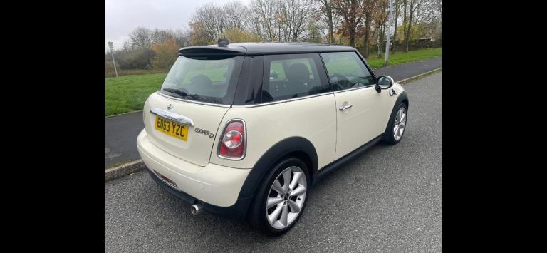 MINI COOPER DIESEL … D ..HATCH BACK ….63 plate Finished in White black roof , half leather sports seats, leather steering wheel ,Center arm rest, , roof spoiler ,power mirrors, windows & steering , abs, air con, onboard computer, cruise, 6-speed, front fogs, stop start, sport button, c/locking alarm/immob, alloys, full colour code, auto lights, parking aid , digital radio, CD player , Bluetooth, alloy pack interior ,traction control , multi e steering wheel, privacy glass , drives ,sounds & looks stunning please call [Phone number removed]just arrived waiting full valet & preparation