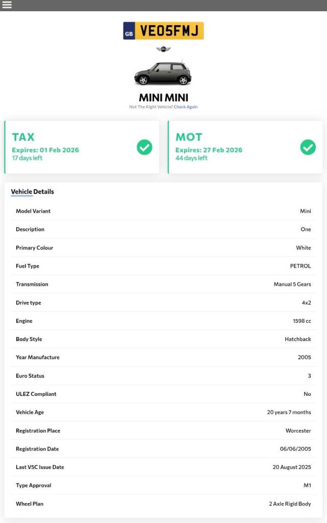 Our vehicle history check is provided for guidance only. Please check all the details with the seller before purchasing
